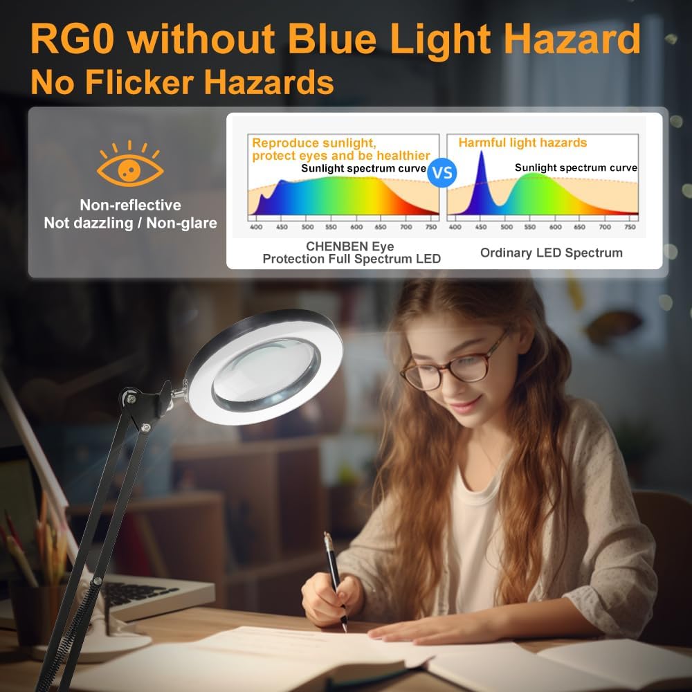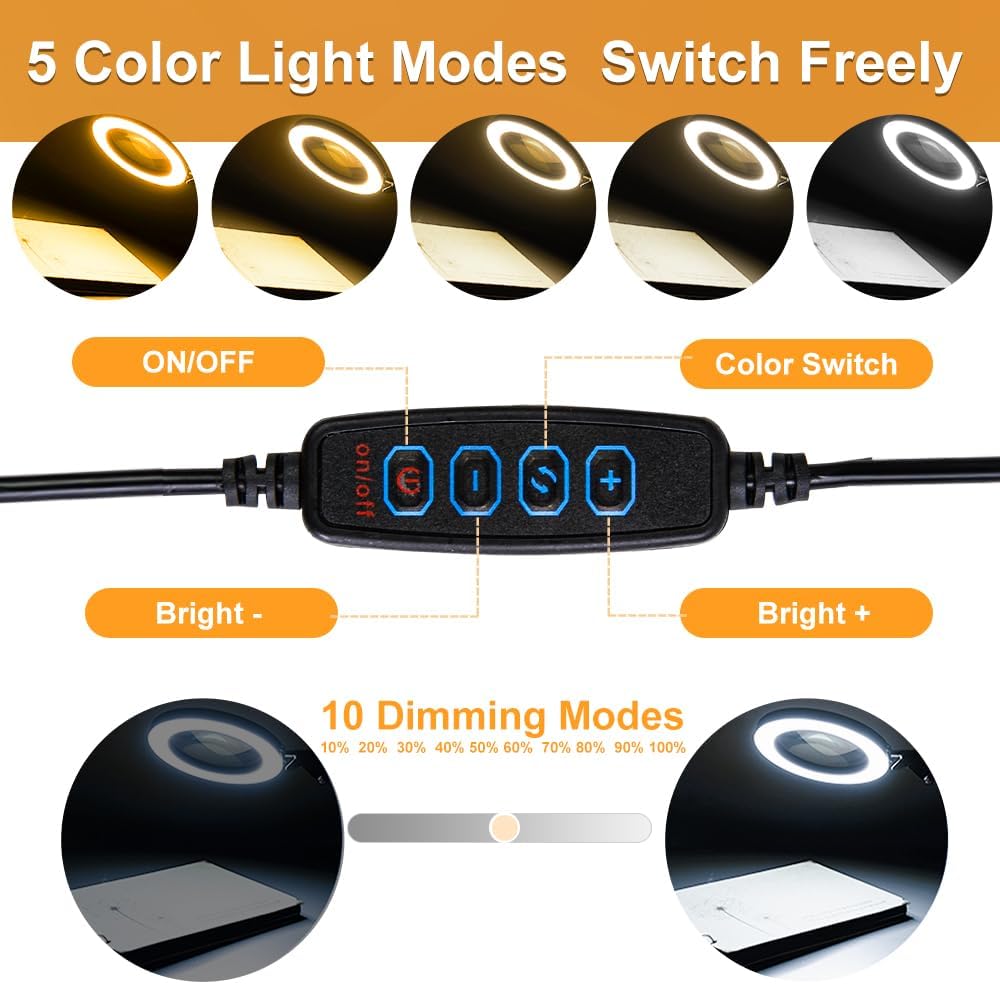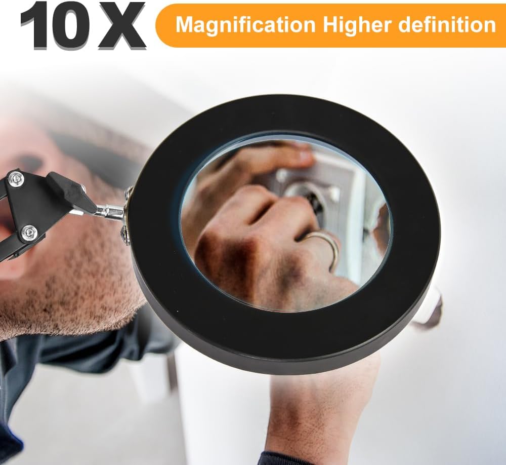 عدسة مكبرة CHENBEN 10X مع مصباح مكتبي خفيف 5 أوضاع ألوان قابلة للتعتيم 2 في 1 عدسة مكبرة مع ضوء وحامل مصباح مكتبي LED قابل للتعديل بدون استخدام اليدين لقراءة أعمال الإصلاح اليدوية