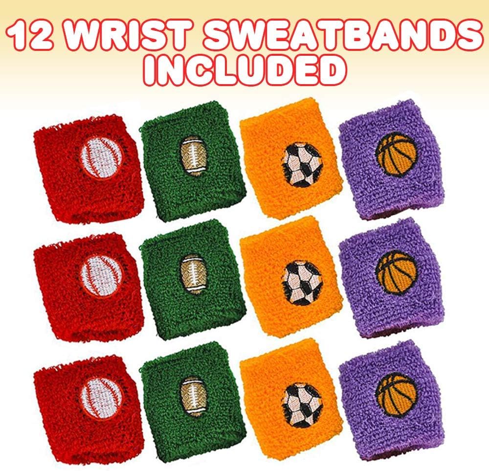 ArtCreativity عصابات المعصم الكروية الرياضية، مجموعة من 12 سوار معصم رياضي بألوان متنوعة مع تصميمات كرة القدم وكرة السلة والبيسبول وكرة القدم، هدايا الحفلات ذات الطابع الرياضي، حشو حقيبة جودي للأطفال