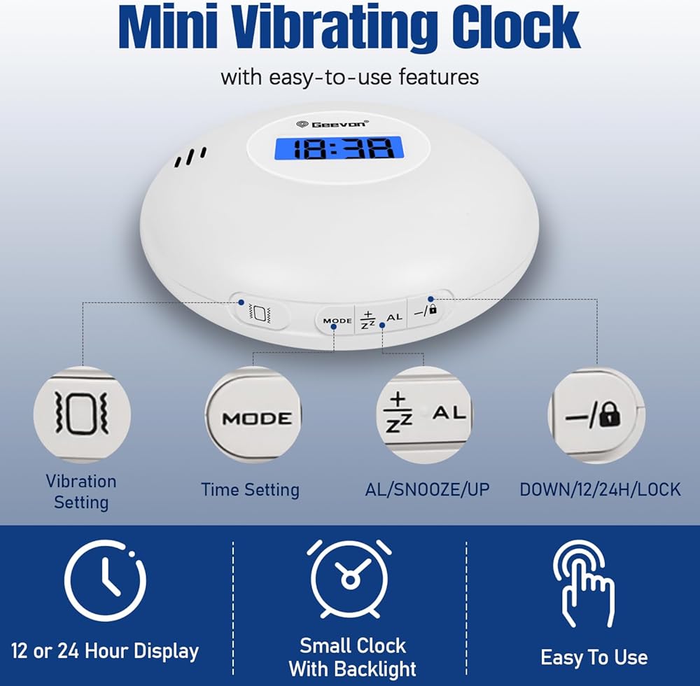 【ساعة منبه هزازة صغيرة محمولة 】استخدم ساعة منبه هزازة للسرير المحمول من جيفون للاستيقاظ في الوقت المحدد في أي وقت وفي أي مكان! يبلغ حجم ساعة المنبه الاهتزازية 3.5 بوصة وتزن 72 جرامًا. إنه صغير الحجم وخفيف الوزن للغاية، ليس مناسبًا للمنزل والعمل فحسب، ولكنه أيضًا مناسب جدًا للسفر كمنبه للسفر. بالإضافة إلى ذلك، فإن ساعة المنبه الاهتزازية الموجودة أسفل الوسادة لها وظيفة منع اللمس عن طريق الخطأ، لذلك يمكنك وضعها تحت وسادتك أو في حقيبة السفر الخاصة بك.