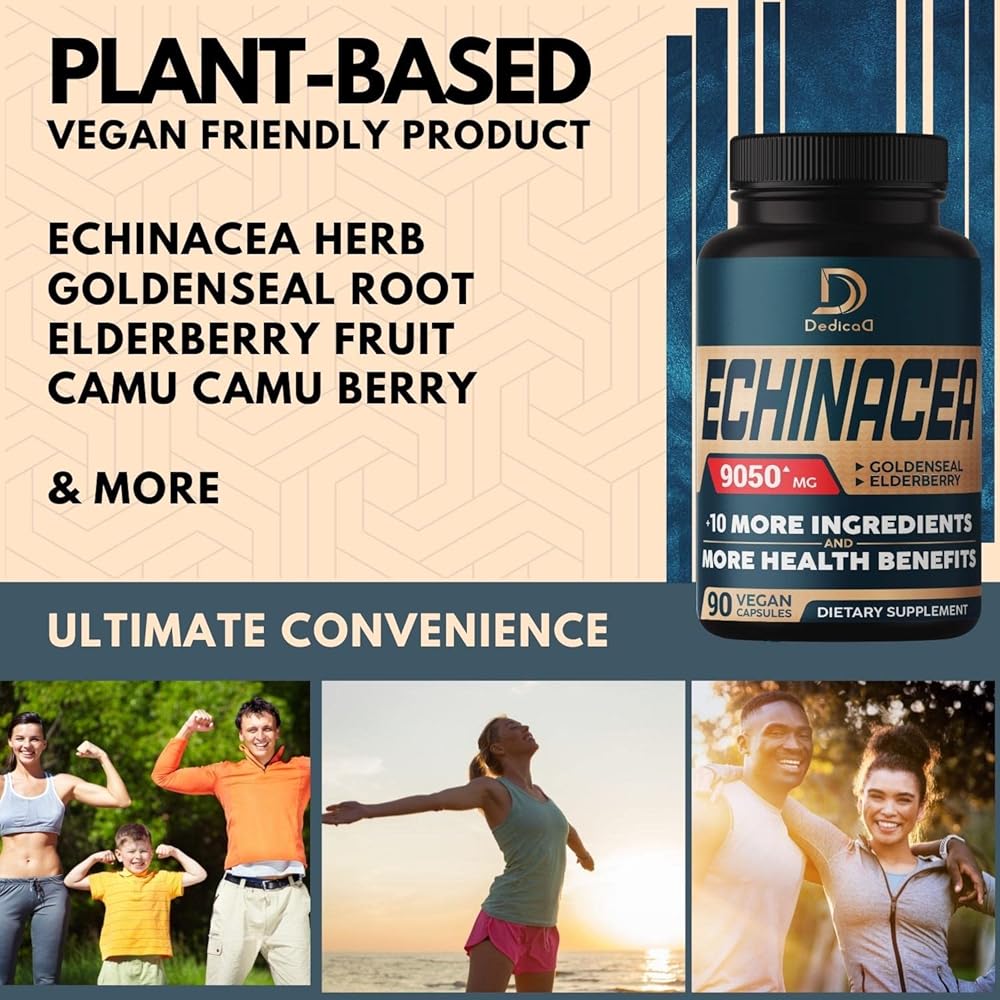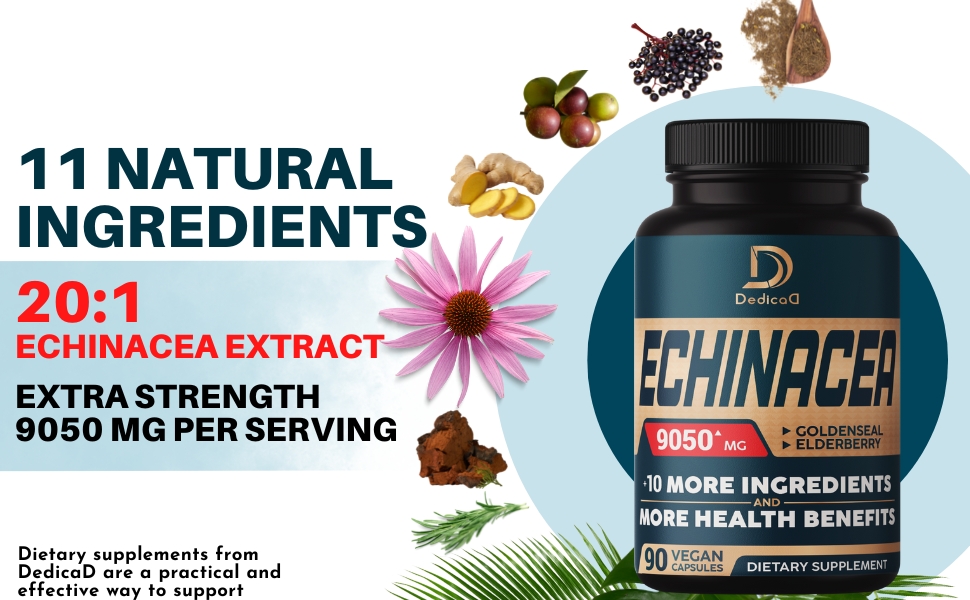 ☑️ يقدم DedicaD Echinacea Complex 9050mg مجموعة من الفوائد الصحية المحتملة، بدءًا من دعم الجسم وتعزيز جهاز المناعة بشكل طبيعي وموازنة الحالة المزاجية؛ خيار رائع لك إذا كنت تبحث عن طريقة طبيعية لتحسين صحتك بشكل عام.