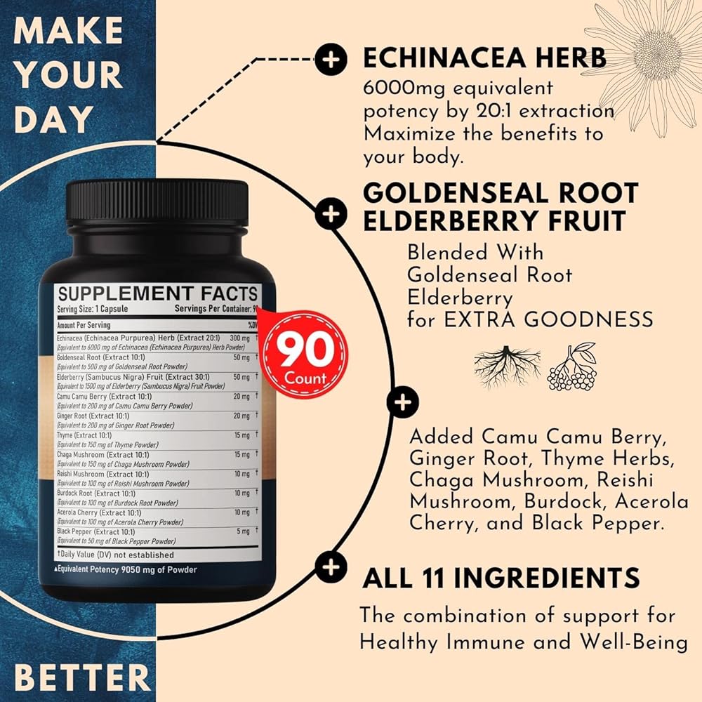 ☑️ يتم استخراج مكمل Echinacea Goldenseal بشكل طبيعي؛ يتم إنتاجه في مصنع Halah & cGMP بمكونات عضوية باستخدام تكنولوجيا الاستخلاص المتطورة. صديق للنباتيين، واختبار عالمي من طرف ثالث.