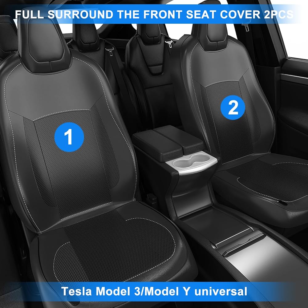 [ملاءمة مخصصة لـ Tesla Model 3 وModel Y 2017-2023] أغطية مقاعد مصممة خصيصًا لـ Tesla Model 3 وModel Y 2019 2020 2021 2022 2023، تم قياسها وخياطتها بدقة، مما يضمن ملاءمة مثالية لكل من الواجهتين الأماميتين أغطية المقاعد، توفر الحماية والراحة القصوى.