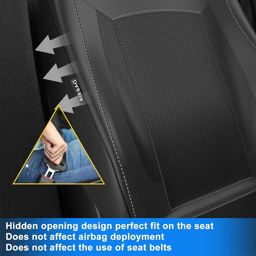 [تصميم مثالي لغطاء مقعد تيسلا] غطاء المقعد الخاص بنا يناسب طراز سيارات تيسلا 3 وطراز Y 2017-2023 بشكل مثالي، ولا يتطلب أي تعديلات أو تعديلات. إنه ينزلق ببساطة على المقعد، ومع ملاءمته الدقيقة، ستنسى وجوده هناك. السلامة أولاً، لم ننس السلامة. تم تصميم غطاء المقعد لاستيعاب الوسائد الهوائية وأحزمة الأمان الآمنة، مما يضمن بقاءك أنت والركاب آمنين في حالة وقوع حادث.