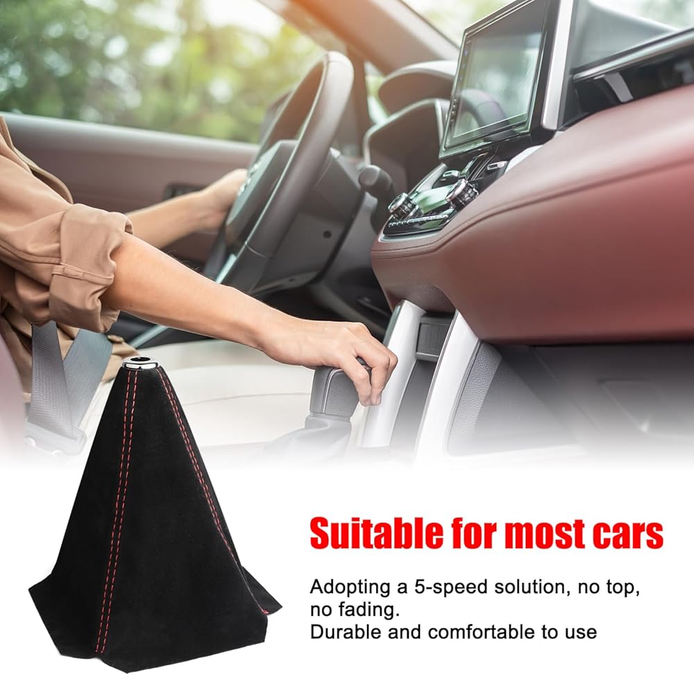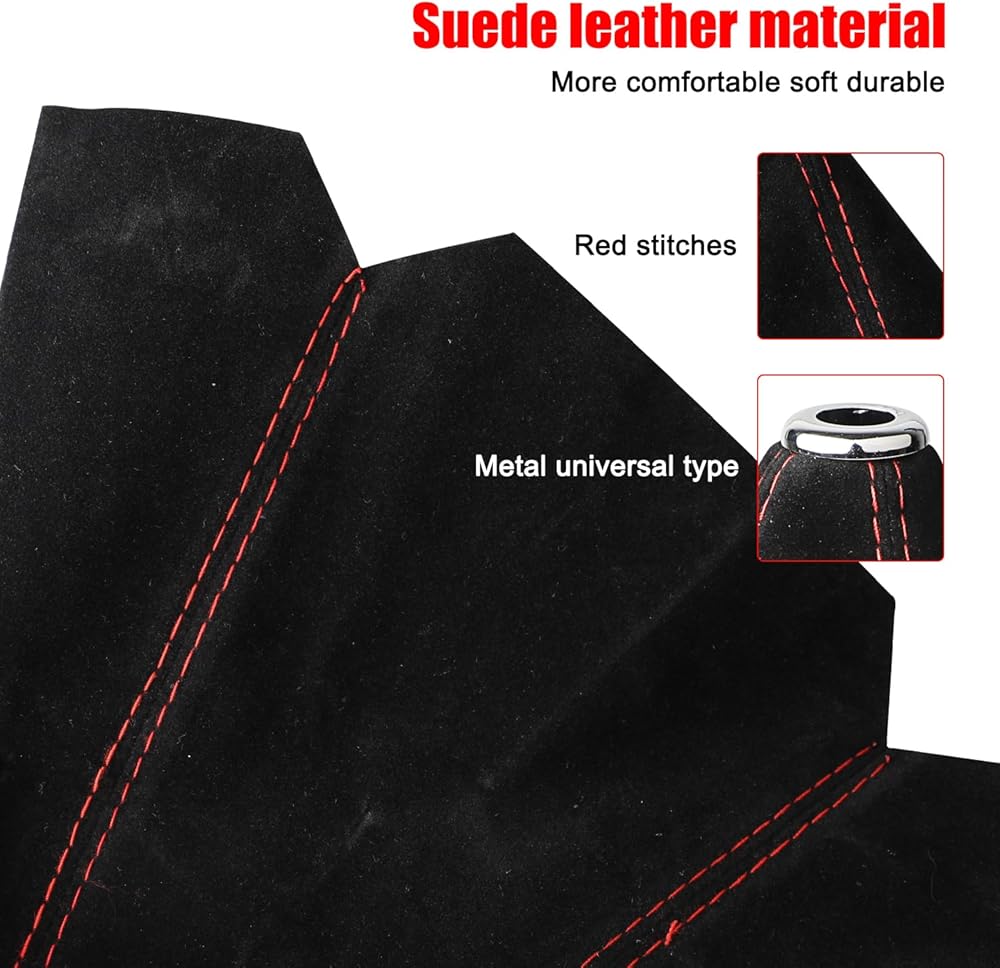 غطاء ناقل الحركة اليدوي أو التلقائي من جلد الغزال العالمي، غطاء ناقل حركة السيارة، غطاء غبار بمقبض ناقل الحركة اليدوي (خياطة سوداء من جلد الغزال الأحمر)