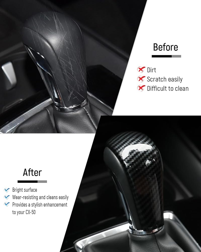 【النموذج】غطاء مقبض ناقل الحركة متوافق مع Mazda CX-50 2023 2024 يرجى التحقق من طراز سيارتك ومقبض ناقل الحركة قبل تقديم الطلب.