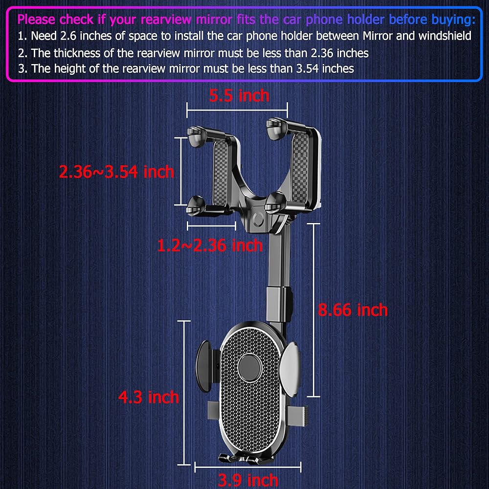 【التوافق: الحامل ليس سهل التركيب فحسب، بل يتم ربطه بشكل آمن بذراع مرآة الرؤية الخلفية للسيارة، مع وسادات سيليكون لحماية المرآة من الضغط والتلف. يستوعب الهواتف بأحجام مختلفة، من أحدث أجهزة iPhone إلى أجهزة Android المختلفة، مما يضمن نطاقًا واسعًا التوافق.