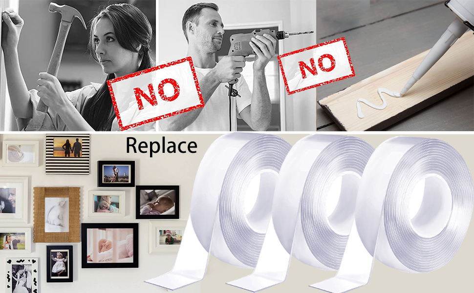 【يستخدم على نطاق واسع】سيتم استخدام شريط التثبيت عالي التحمل في جميع جوانب حياتك. يمكنك استخدام شريط النانو لإصلاح أو لصق عناصر مثل إطارات الصور، وملصقات الحائط، والملصقات، والخطافات، والأرفف، وحاملات الهواتف، والسجاد، وأواني الزهور، ومآخذ الطاقة، والديكورات، والعناصر التي يمكنك صنعها بنفسك... مع أداء جيد سواء في الداخل أو الخارج. ومع ذلك، فإن الشريط ذو الوجهين غير مناسب للجدران الملوثة بالزيت أو الماء، والجدران سهلة التقشير أو الجدران المطلية.