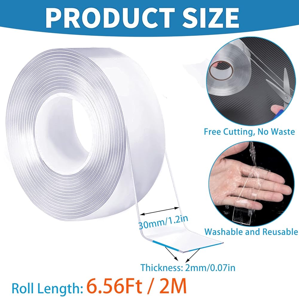 【شريط مزدوج الجوانب شديد التحمل】يستخدم شريط التثبيت مزدوج الجوانب تقنية النانو المصنوعة من مادة جل الأكريليك الشفاف، الشريط مزدوج الجوانب قوي جدًا ومتين وسهل التركيب، ويمكن ربطه على الفور بدون أدوات أو معالجة أو تجفيف.