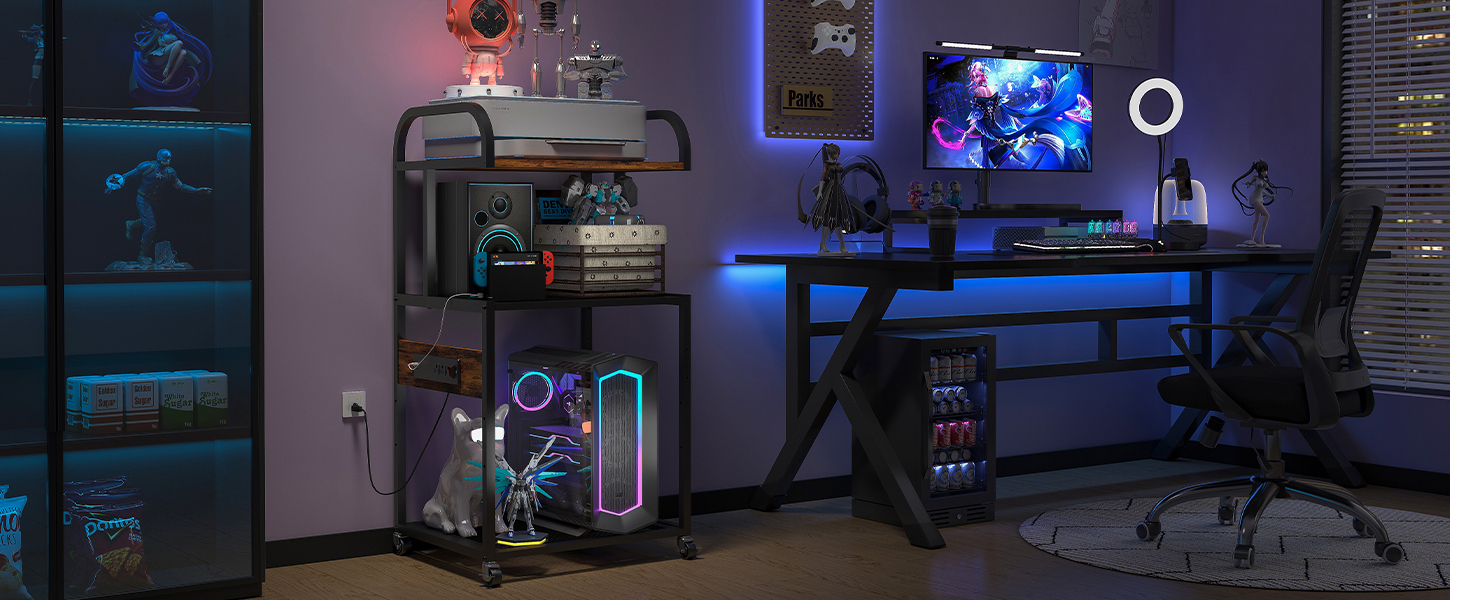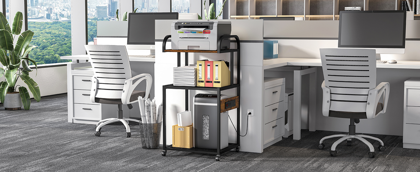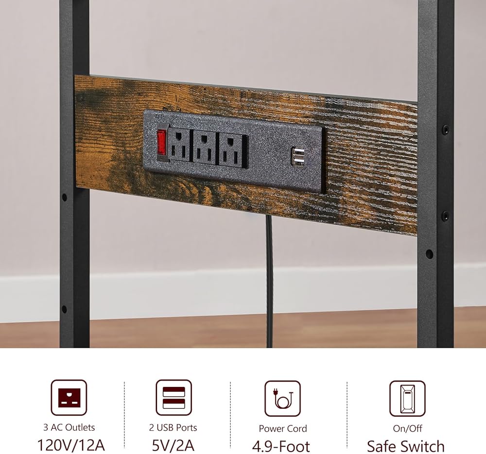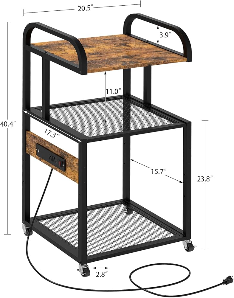 【منفذ طاقة مدمج 】تحتوي طاولة الطابعة المنزلية والمكتبية على محطة شحن مثبتة على اللوحة الجانبية. يوجد 3 منافذ طاقة تيار متردد ومنفذي USB لشحن الطابعات وآلات تمزيق الكمبيوتر المضيفة والهواتف المحمولة في نفس الوقت. مفتاح تشغيل/إيقاف مضاء لحماية سلامة الكهرباء. نحن نقدم سلك طاقة بطول 4.9 قدم للموقع المرن