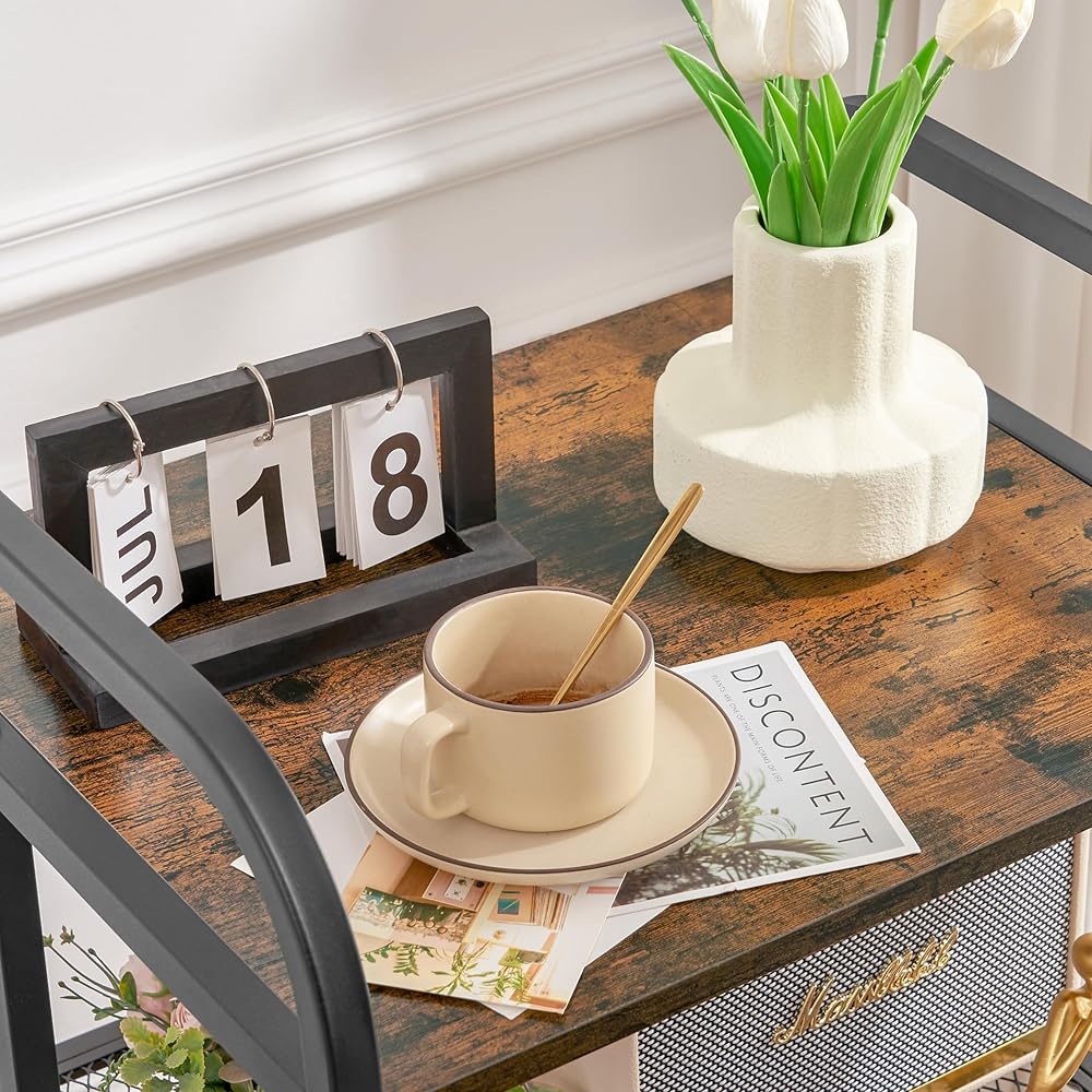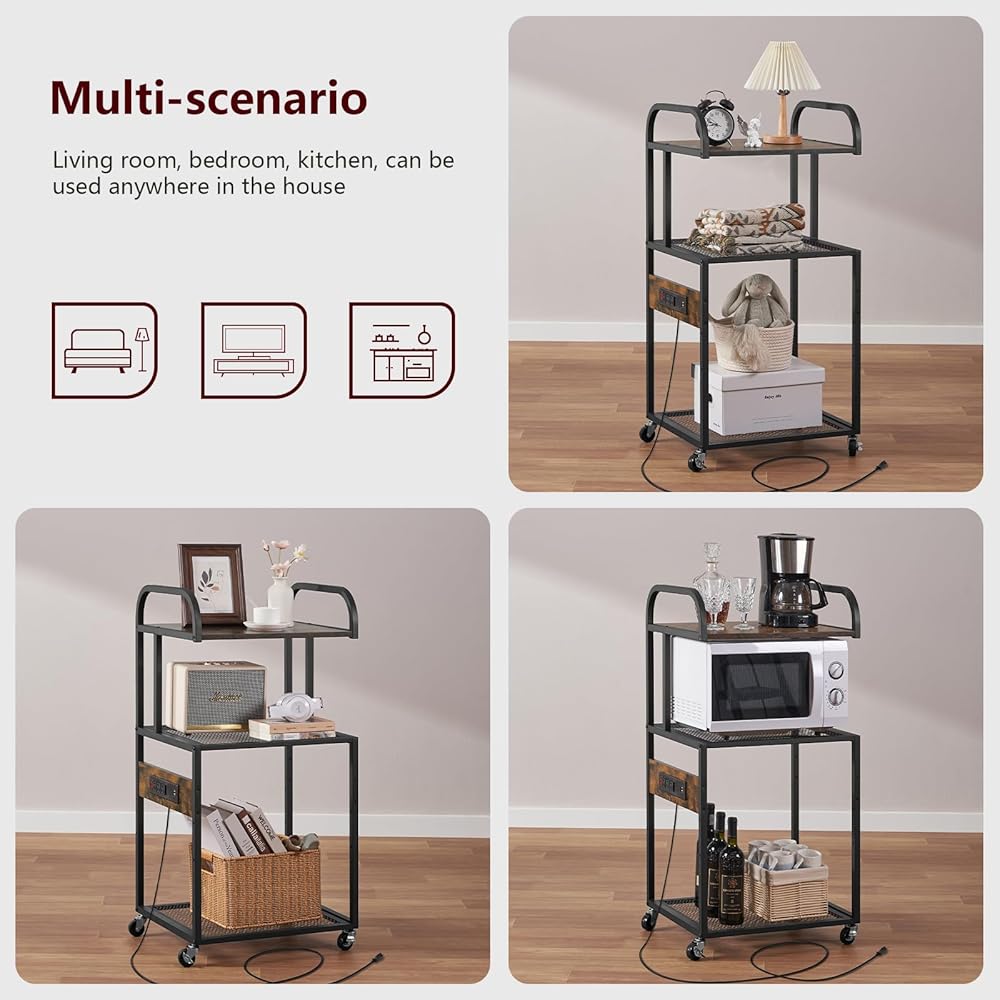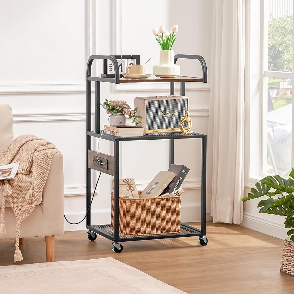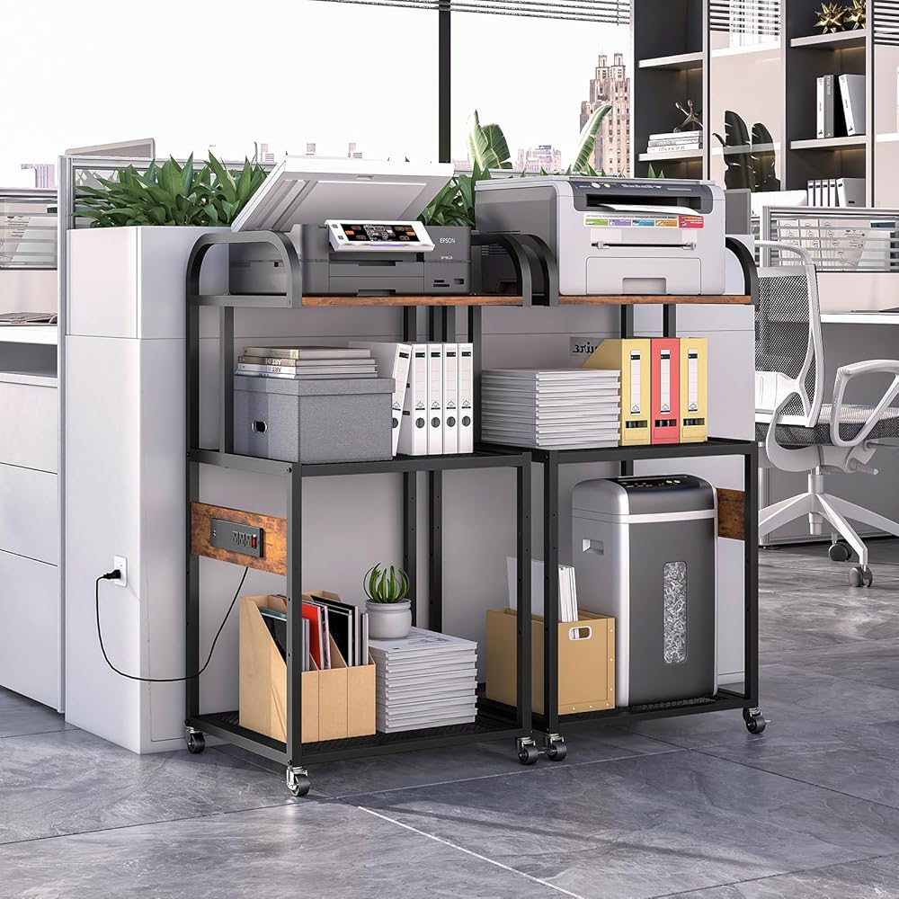 حامل طابعة WEENFON مع رف تخزين قابل للتعديل، طاولة طابعة 3 طبقات بعجلات، عربة دوارة مع منافذ طاقة ومنافذ USB، آلة التقطيع وحامل وحدة المعالجة المركزية للمكتب المنزلي، غرفة المعيشة، بني ريفي