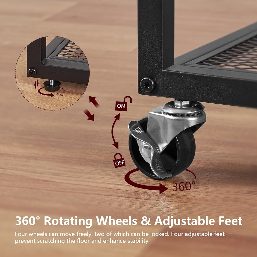 【خياران】يأتي حامل الطابعة مزودًا بأقدام قابلة للتعديل وعجلات دوارة، يمكنك استخدام القدم للبقاء ثابتًا لتحقيق الاستقرار الكامل، أو يمكنك تثبيت عجلات ثابتة من الدرجة الصناعية لتحريك الدعم بمرونة والدفع والسحب بسهولة. اثنتين من العجلات الأربع قابلة للقفل للحفاظ على العربة في مكانها