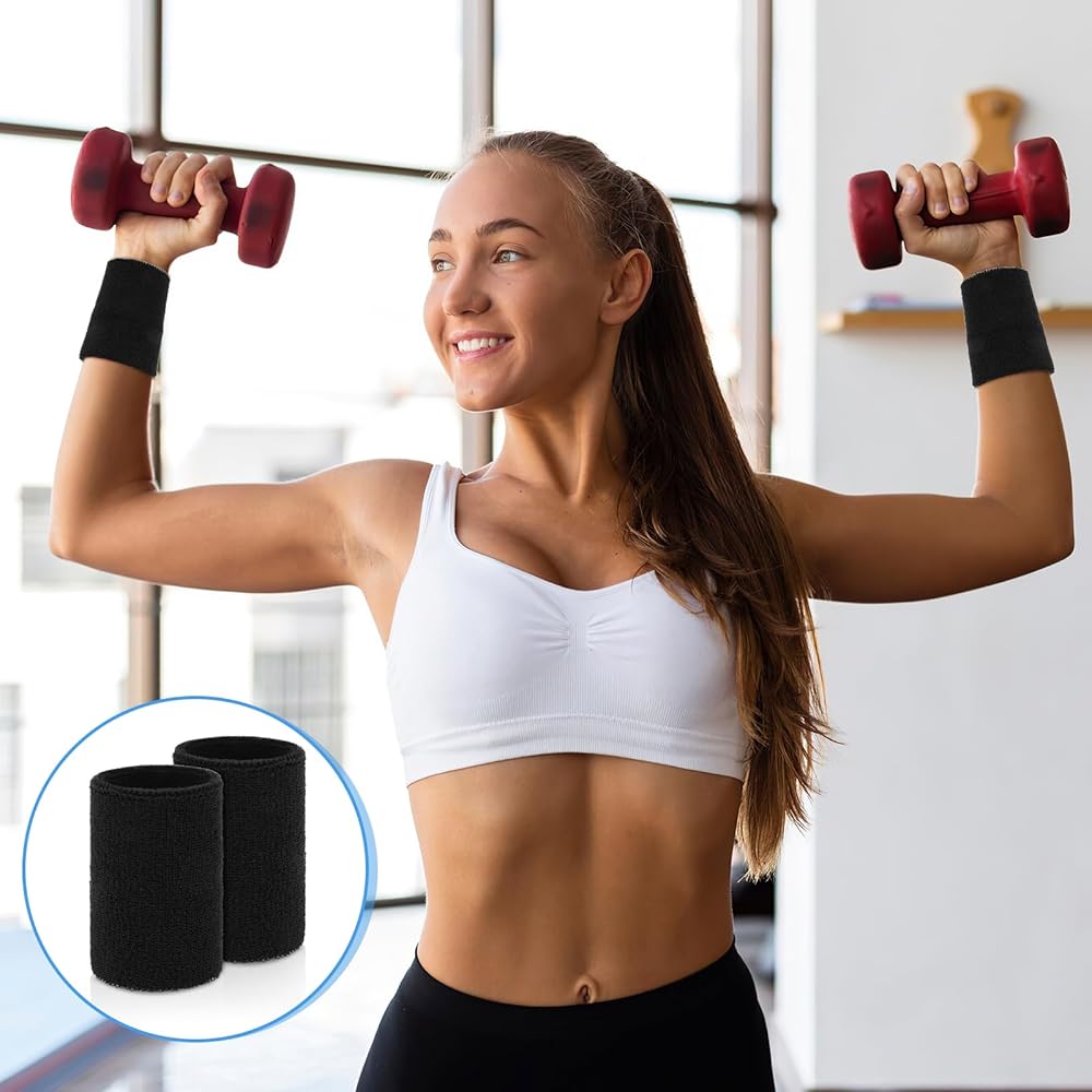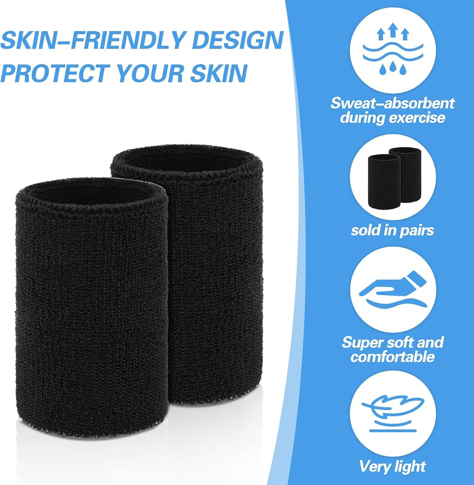 💪【Package List】Package contains 6 pieces of black sweat-absorbent event wrist bands, the size of a single wristband is 3.94 × 2.75 inches/10×7 cm, suitable for various wrist sizes. These durable and stylish sweat-absorbent event wristbands not only meet your daily needs, but also perfectly match your sports equipment, giving you a unique look during exercise.Whether you're a woman or a man, sweatbands fit securely during exercise, allowing you to enjoy your workout to the fullest.