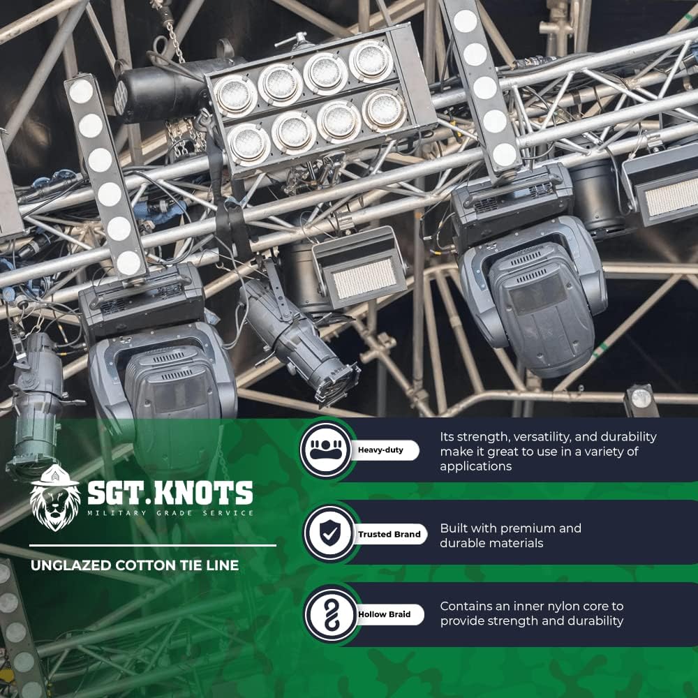 • COTTON LINE - A highly versatile, sturdy, and durable cotton tie line ready for use in a wide range of indoor and outdoor projects including theatrical uses, draping, and cable management in rafters, hunting, and more.