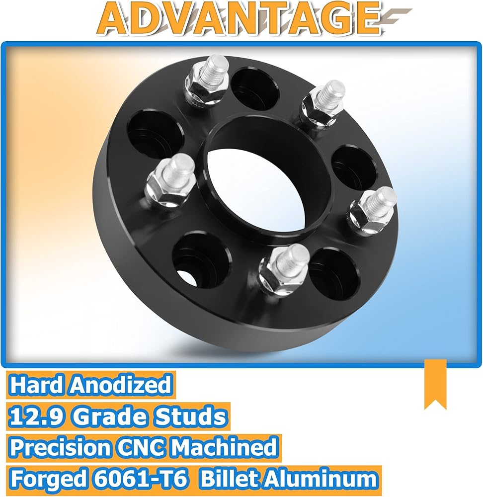 ADVANTAGE: (1) Forged 6061-T6 Aluminum Alloy material, High-quality pre-installed heat treated 12.9-grade studs, enhances the strength of the wheel spacers. (2) CNC automatic processing ensures high accuracy and stability(0.02mm), you are getting the highest quality of wheel spacers that is tough, stable and safe. (3) Increasing clearance for oversized or wider wheels and improving handling characteristics/stability and brake clearance. Giving your vehicle a more aggressive appearance