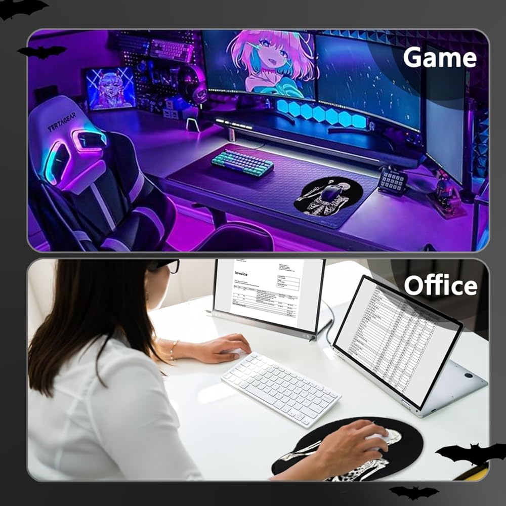 💼【نمط جمجمة لطيف】تمتزج لوحة الماوس kawaii الخاصة بنا مع دعم المعصم بشكل مثالي مع أي ديكور. تعتبر الأنماط الممتعة مثل الجماجم السوداء والهياكل العظمية المضحكة والأشباح اللطيفة مثالية للرجال والنساء والمراهقين والأطفال كملحقات مكتبهم الشخصية القوطية.