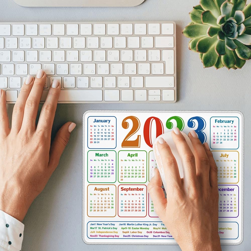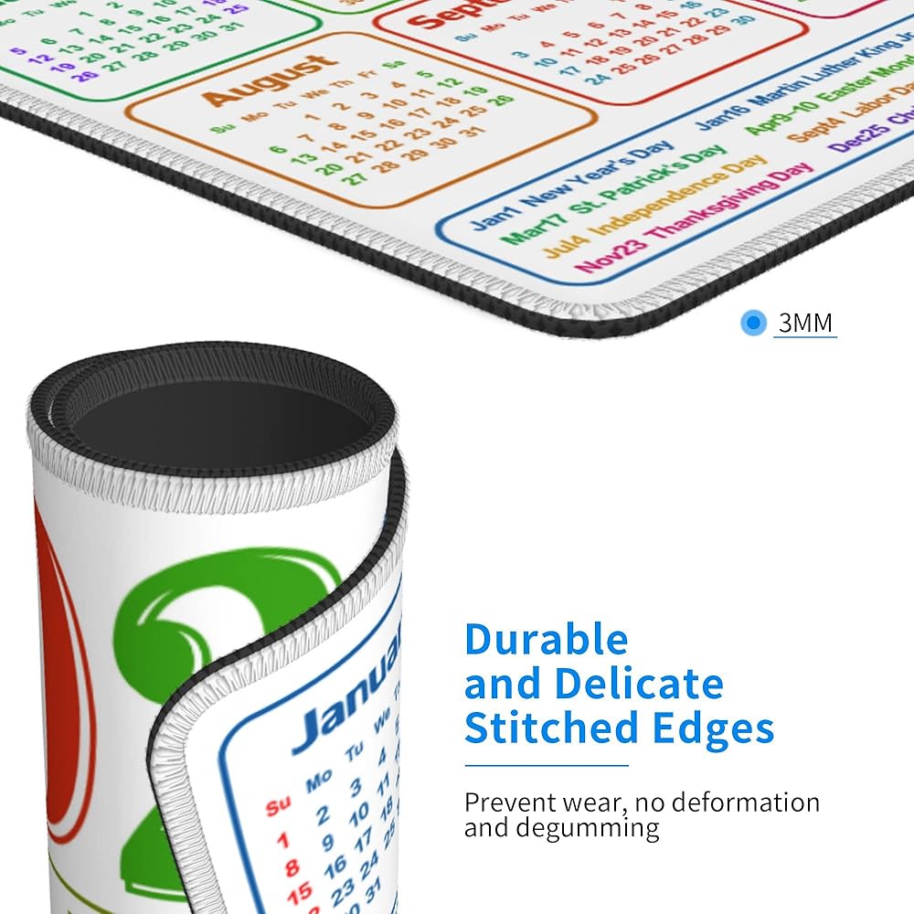 • Multi-purpose - The calendar mouse pads are special desk accessories for your office or home. Great for your laptop, computer and Pc. Suitable for Wireless Mouse. Decorate your desk and welcome the year 2024. Also a great gift for someone you love. Machine washable.