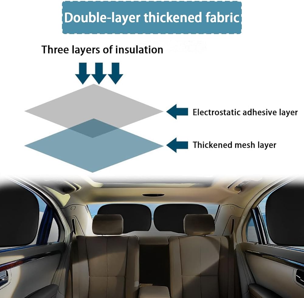 • 【Sunlight Protection】: Effectively block sunlight and UV radiation, protect the eyes and skin of car passengers, especially babies, from harm, and provide a cool and comfortable environment. It can also prevent damage to the car accessories from prolonged direct sunlight and effectively prevent the car interior parts from fading and aging.