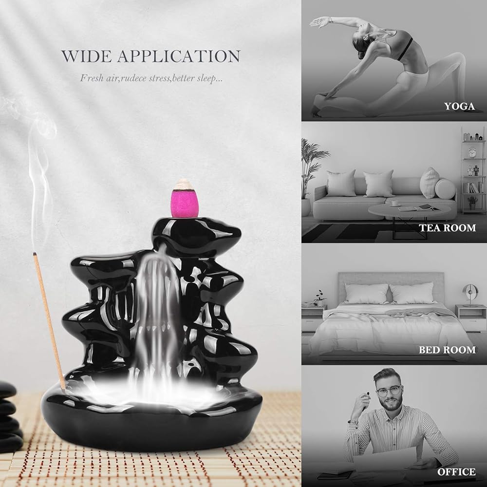 ✨الفوائد --- استخدمي مبخرة الشلال الخاصة بنا مع مخروط البخور أوتوفي الذي يتميز برائحة غنية ورائحة طويلة، ويساعد على تنقية الهواء، والتأمل والاسترخاء، وتخفيف التوتر وتحسين جودة النوم.