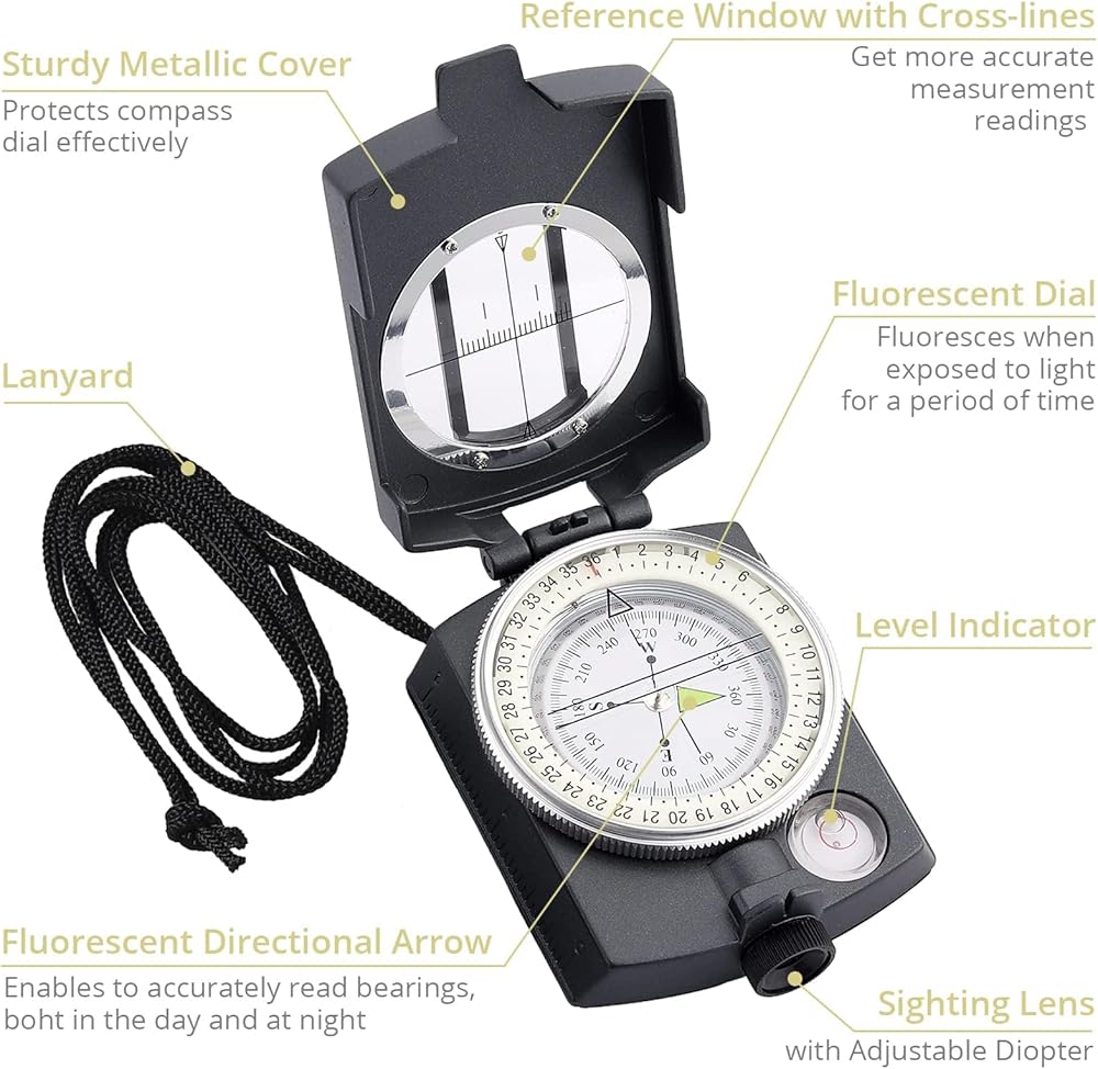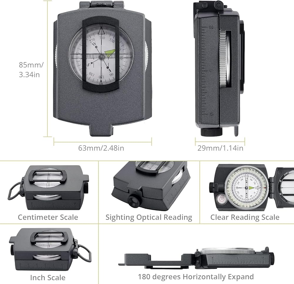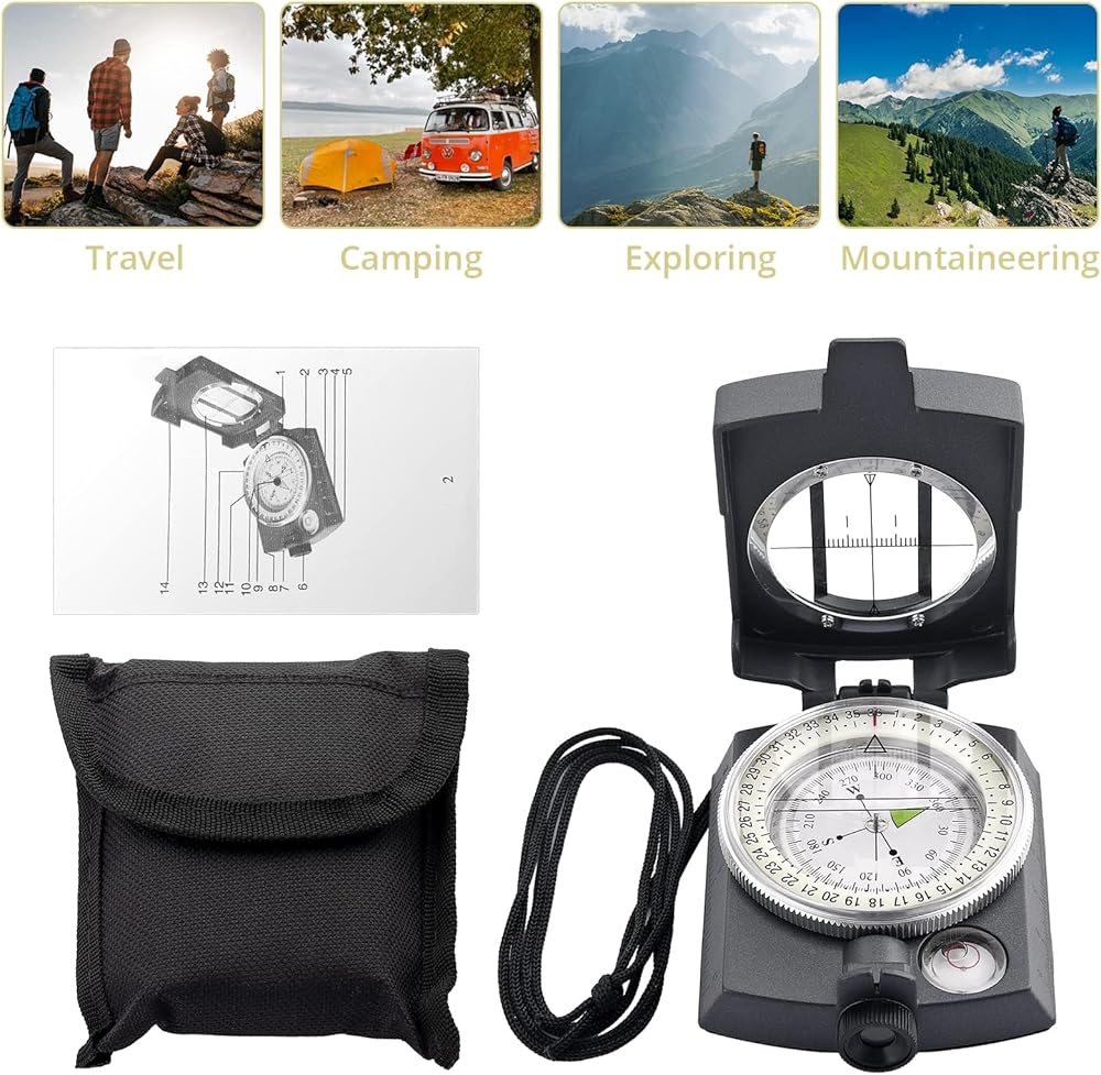 بوصلة عسكرية، بوصلة احترافية للمشي لمسافات طويلة مع حقيبة حمل، بوصلة ملاحة مقاومة للماء، بوصلة بقاء مدمجة، بوصلة رؤية عدسة للمشي لمسافات طويلة والصيد والتخييم في الهواء الطلق