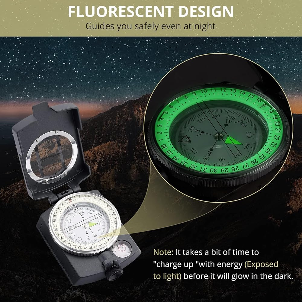 【تصميم فلورسنت مثالي للمغامرات الخارجية】بعد امتصاص ما يكفي من أشعة الشمس، يتوهج سطح بوصلة Anbte في الظلام لإرشادك بأمان حتى في الليل. تعتبر بوصلة الجيب الاحترافية Anbte مثالية للحمل والتصويب في المشي لمسافات طويلة والتخييم والصيد والجيولوجيا وغيرها من الأنشطة الخارجية.