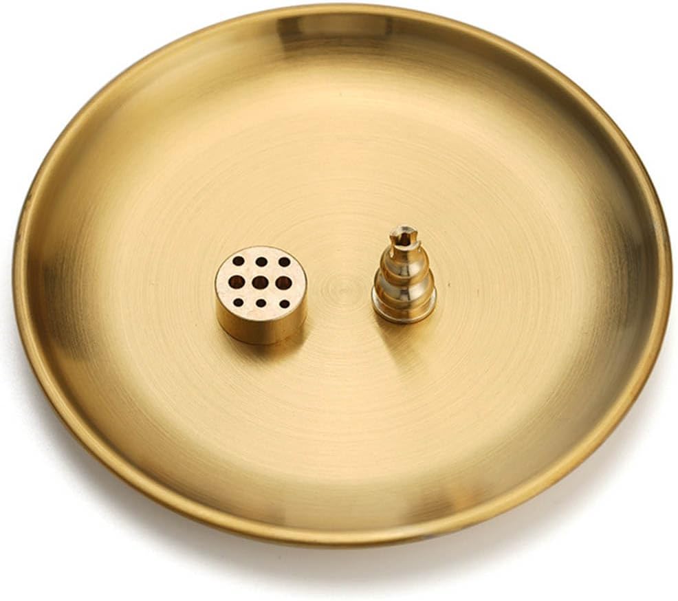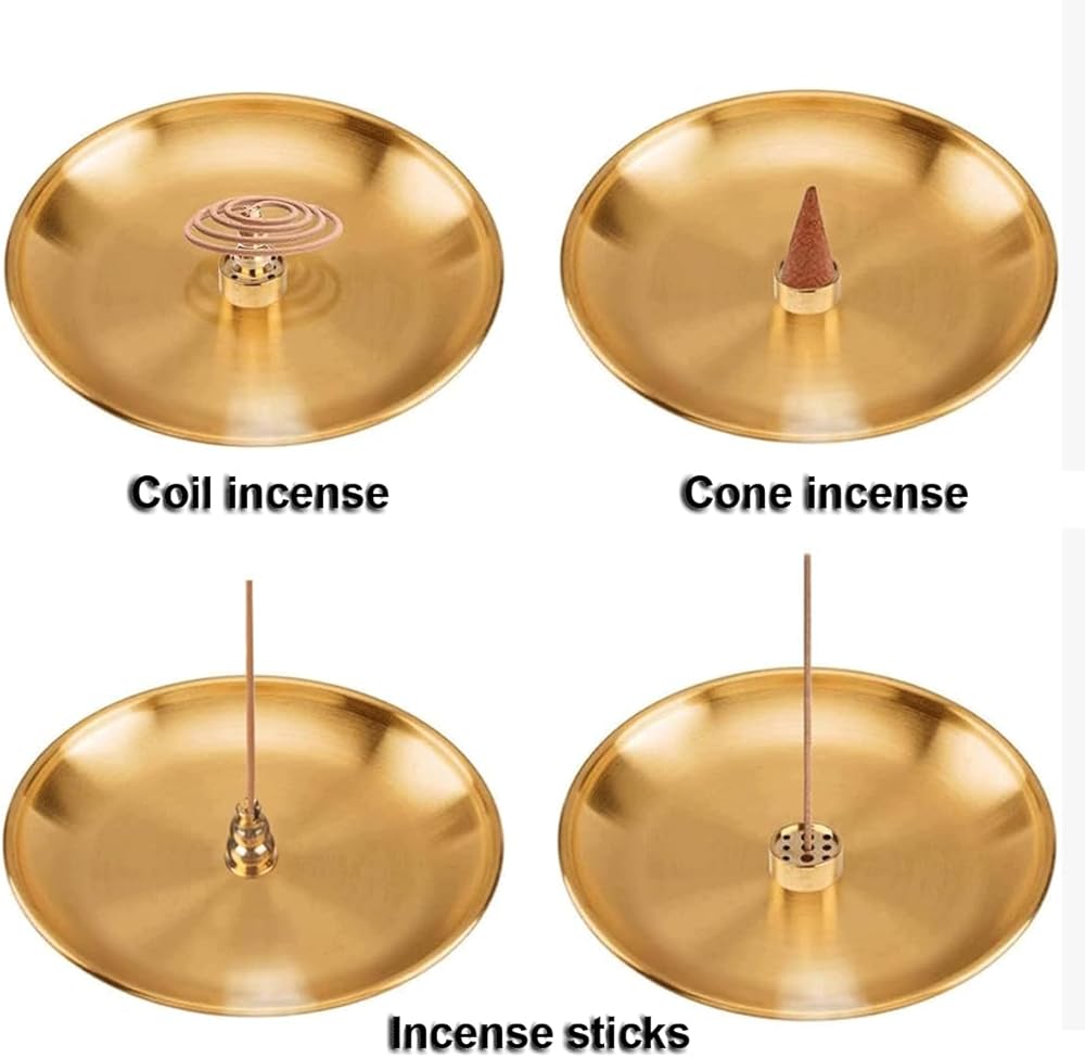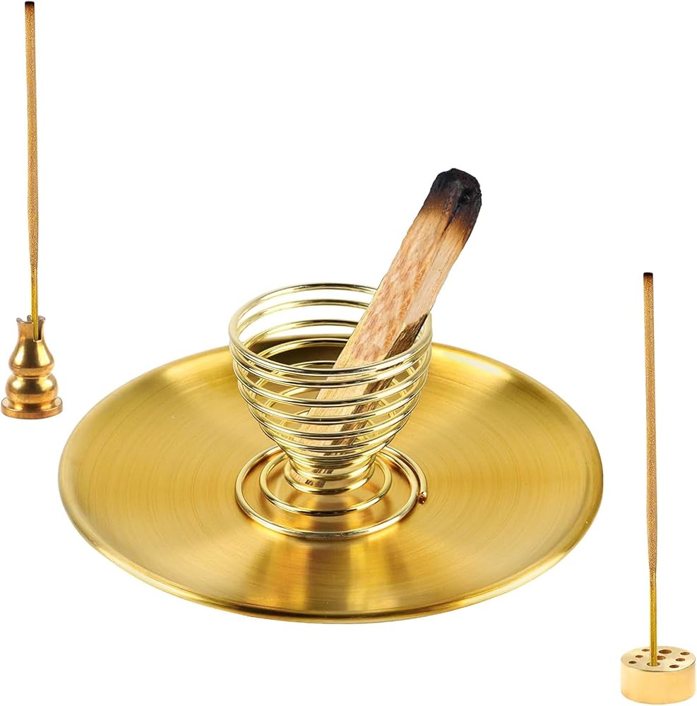 5 in 1 Incense Holder Set: 1 pc metal tray; 1 pc brass gourd-shaped incense holder; 1 pc 9-hole disc-shaped holder; 1 pc Palo Santo or sage stick holder.