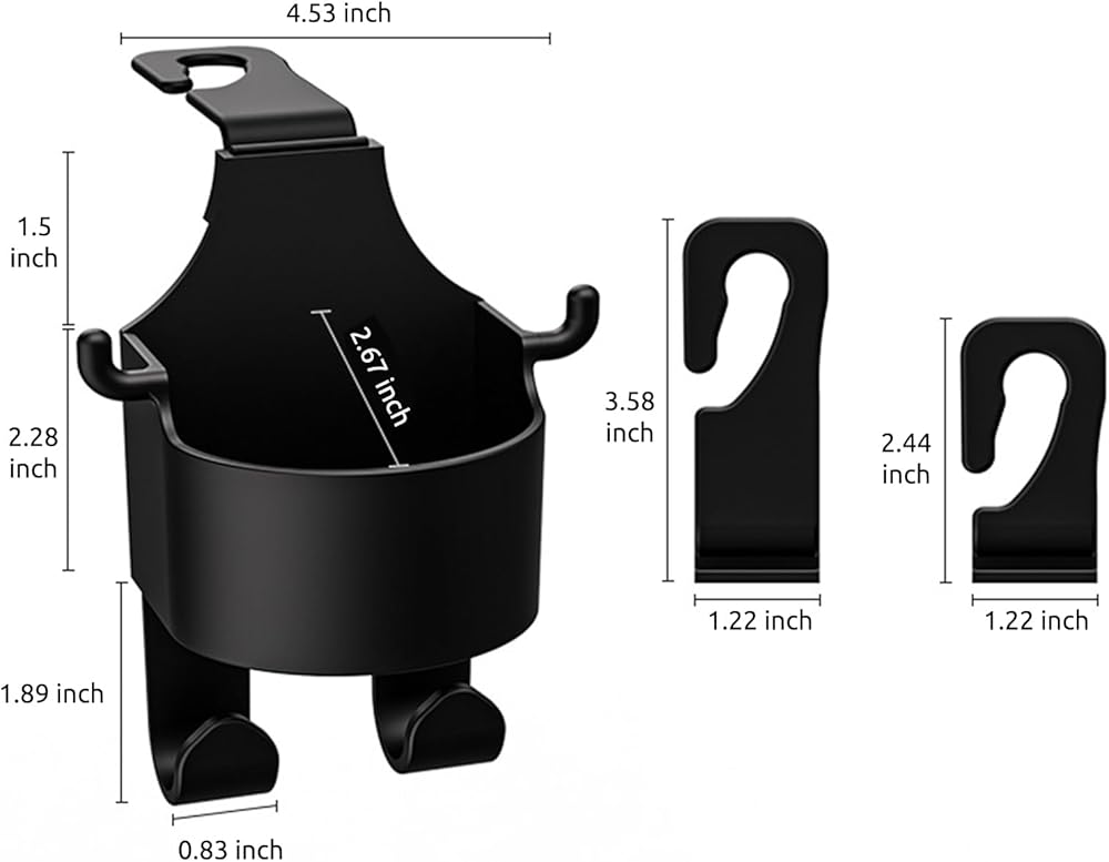 Space-Saving Design: Maximize the space in your car with these cup holder hooks. for keeping your purse, umbrella, handbag, and other essentials easily accessible while driving. Say goodbye to placing them on the floor, ensuring a clutter-free and comfortable driving experience. Keep your belongings organized and easily accessible, eliminating cluttered car seats or cup holders.