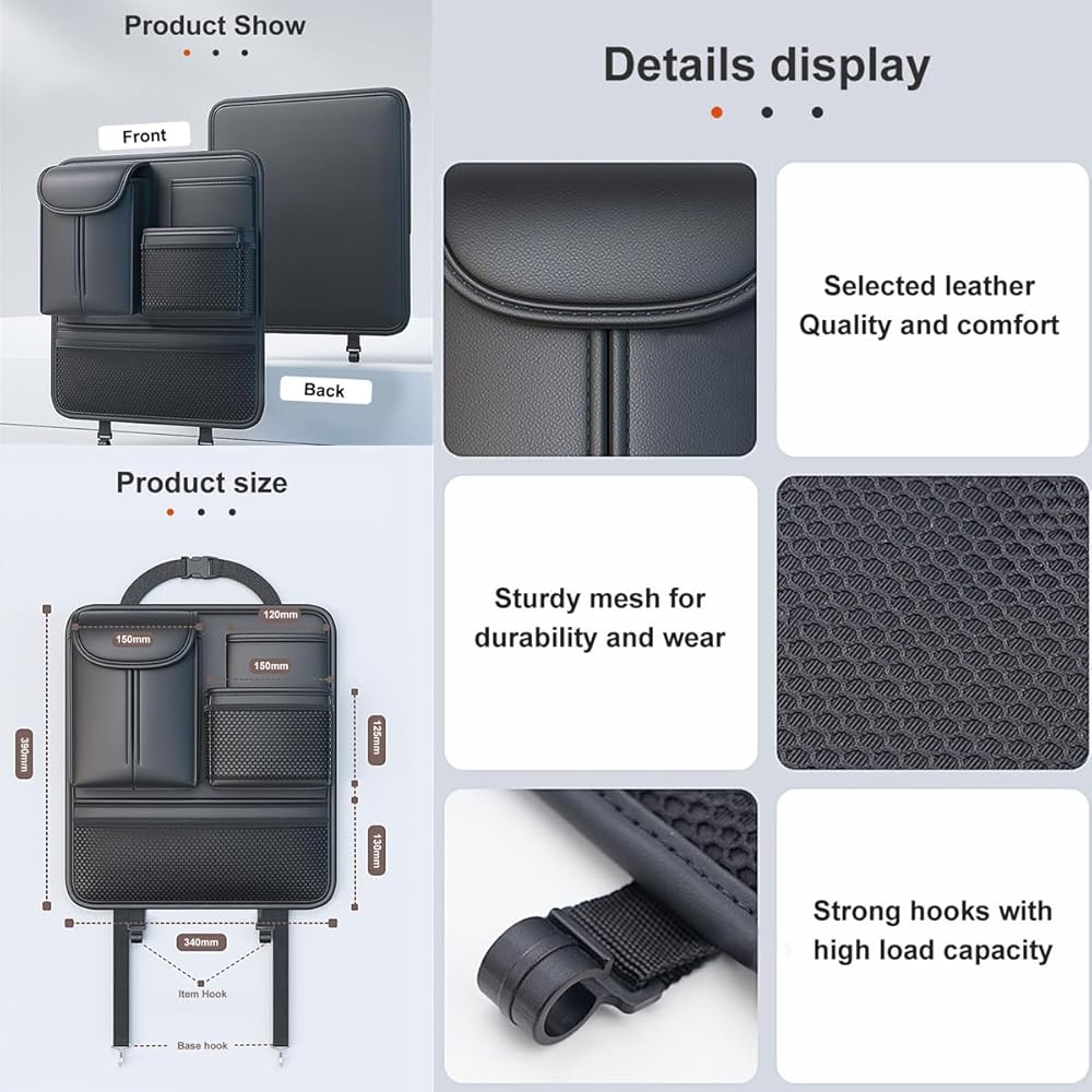 مواد عالية الجودة - حقيبة تعليق لتخزين مقعد السيارة مصنوعة من مادة جلد البولي يوريثان التي تتميز بملمس جيد وملمس جيد، والتصميم الفاخر يمنحها مظهرًا فاخرًا. تضمن المواد عالية الجودة جنبًا إلى جنب مع الخياطة الممتازة استخدامًا طويل الأمد.