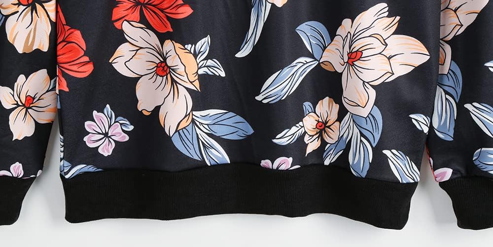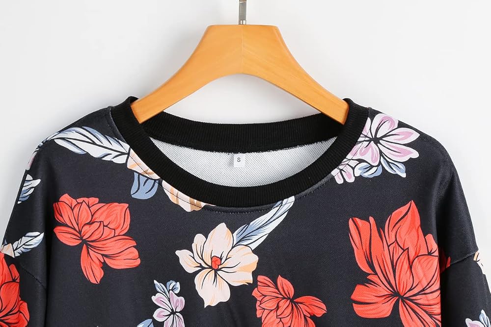 المرأة الأزهار طباعة Crewnecks بلوزات الربيع عارضة فضفاض الرياضة الأسود البلوز قمم