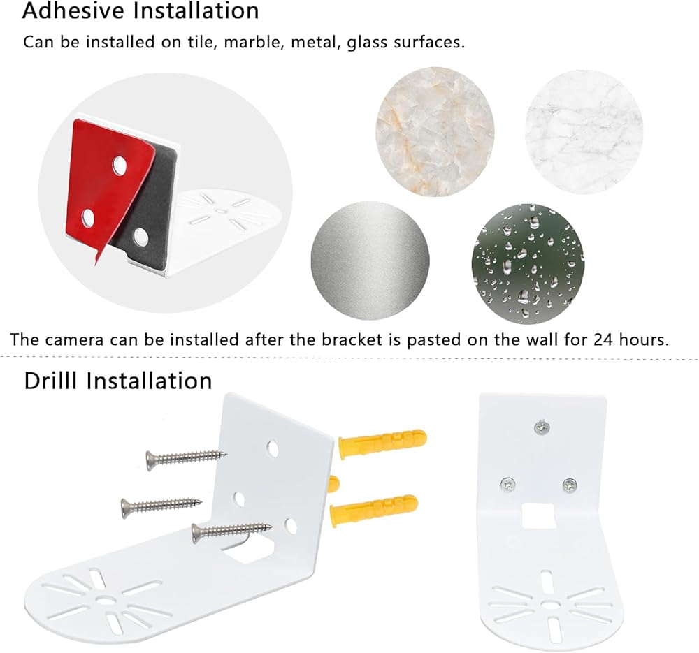 طريقتان للتركيب: اختيار التركيب اللاصق أو التثبيت اللولبي. يمكن لصق دعامة تثبيت الكاميرا بسهولة على الأسطح الملساء مثل الزجاج والحديد، ويمكن أيضًا ثقبها وتثبيتها على الجدران لضمان التثبيت المستقر.