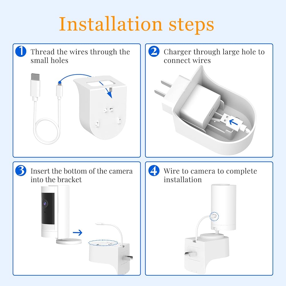إخفاء الأسلاك الفوضوية - يسمح لك حامل الحائط بمنفذ الكاميرا الداخلي الدائري هذا بشحن الكاميرا الحلقية الخاصة بك دون أسلاك طويلة فوضوية. احصل على مظهر نظيف ومرتب مع حلقة الكاميرا الداخلية ذات الكابل القصير المخصص. (لا يتم تضمين الكاميرا الدائرية والقابس.)
