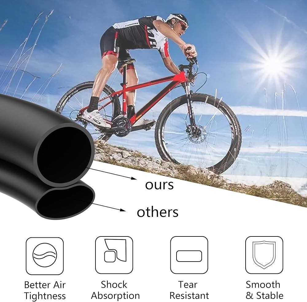 • 【ناعم وآمن】يتميز مطاط البوتيل السميك بقدرة تمدد أقوى، ومقاومة ممتازة للصدمات وقدرة على امتصاص الصدمات، والتي يمكنها توزيع تأثير الطريق الوعر بشكل أفضل وتوفير تجربة ركوب مريحة وآمنة.