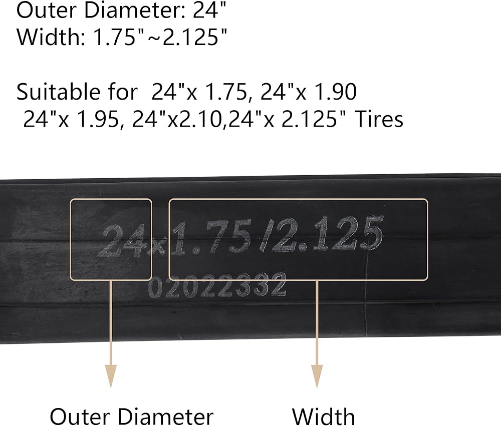 • 【الحجم】صمام شريدر (عادي) 32 مم. أنبوب الدراجة مقاس 24x1.75/2.125 مناسب لإطارات مقاس 24 بوصة بعرض 1.75 بوصة إلى 2.125 بوصة، مناسب تمامًا لإطارات الدراجات مقاس 24 بوصة × 1.75، 24 بوصة × 1.90، 24 بوصة × 1.95، 24 بوصة × 2.10، 24 بوصة × 2.125