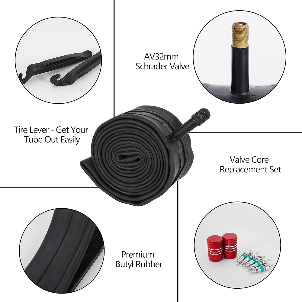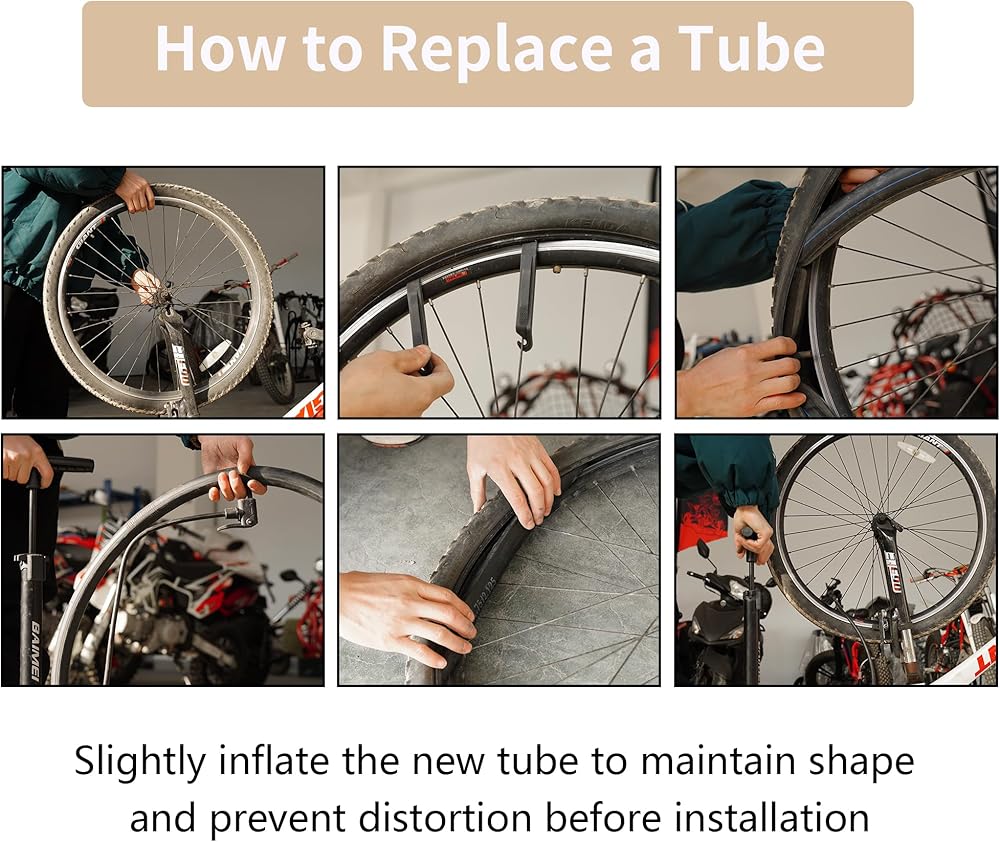 • [سهلة التركيب] أذرع الإطارات المتضمنة تجعل من السهل استبدال أنبوب الدراجة. تذكر أن تنفخ الأنبوب الجديد قليلاً للحفاظ على الشكل ومنع التشوه قبل التثبيت