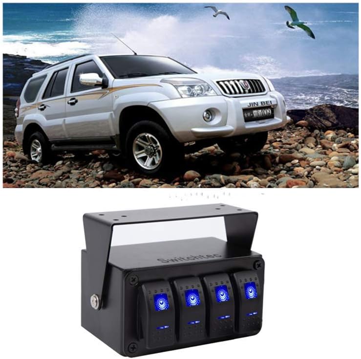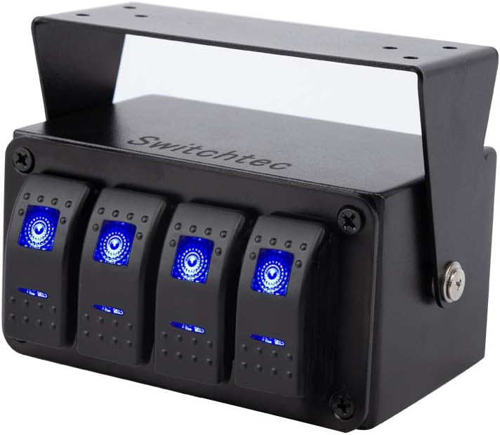 4 Gang Rocker Switches Panel These switches are newly design to increase durability. These switches are rated at 10000 on and off cycles without failure. Splash-proof panel face, water resistance caps and anti-seepage rubber ring. BLUE LED light indicator, waterproof