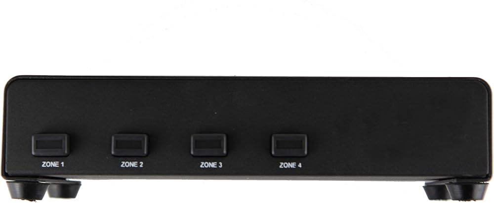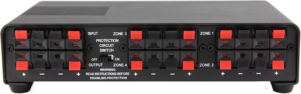Distributes one stereo speaker-level signal to four stereo listening zones.