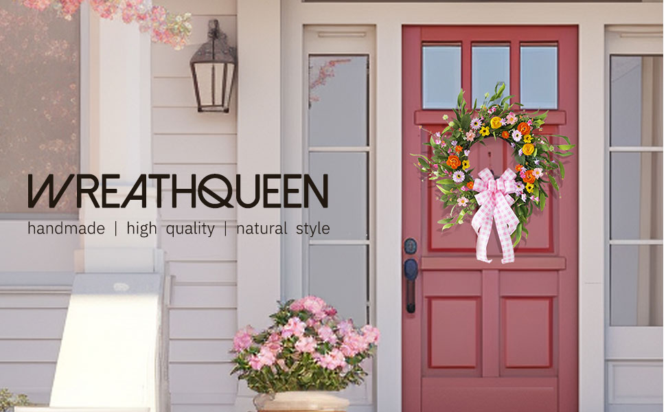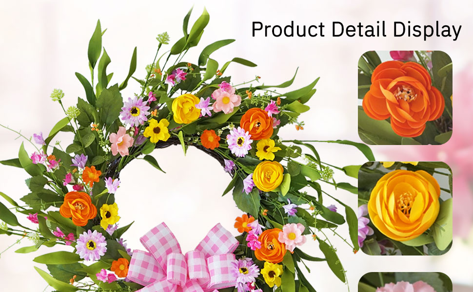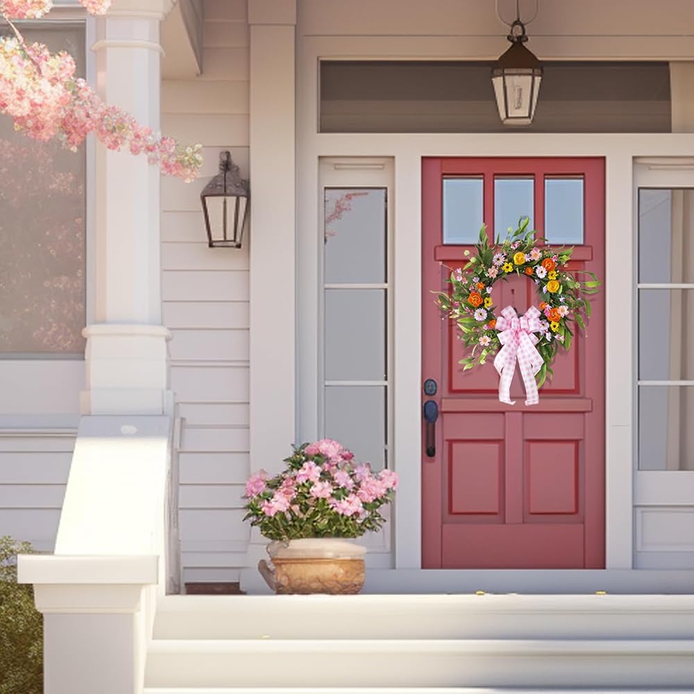 • إكليل زهور الربيع عالي الجودة - مصنوع يدويًا على يد باعة زهور محترفين، إكليل المزرعة هذا مصنوع مع الاهتمام بالتفاصيل والمواد عالية الجودة، لذا يضمن إكليل العطلات المتانة ومقاومة السقوط!