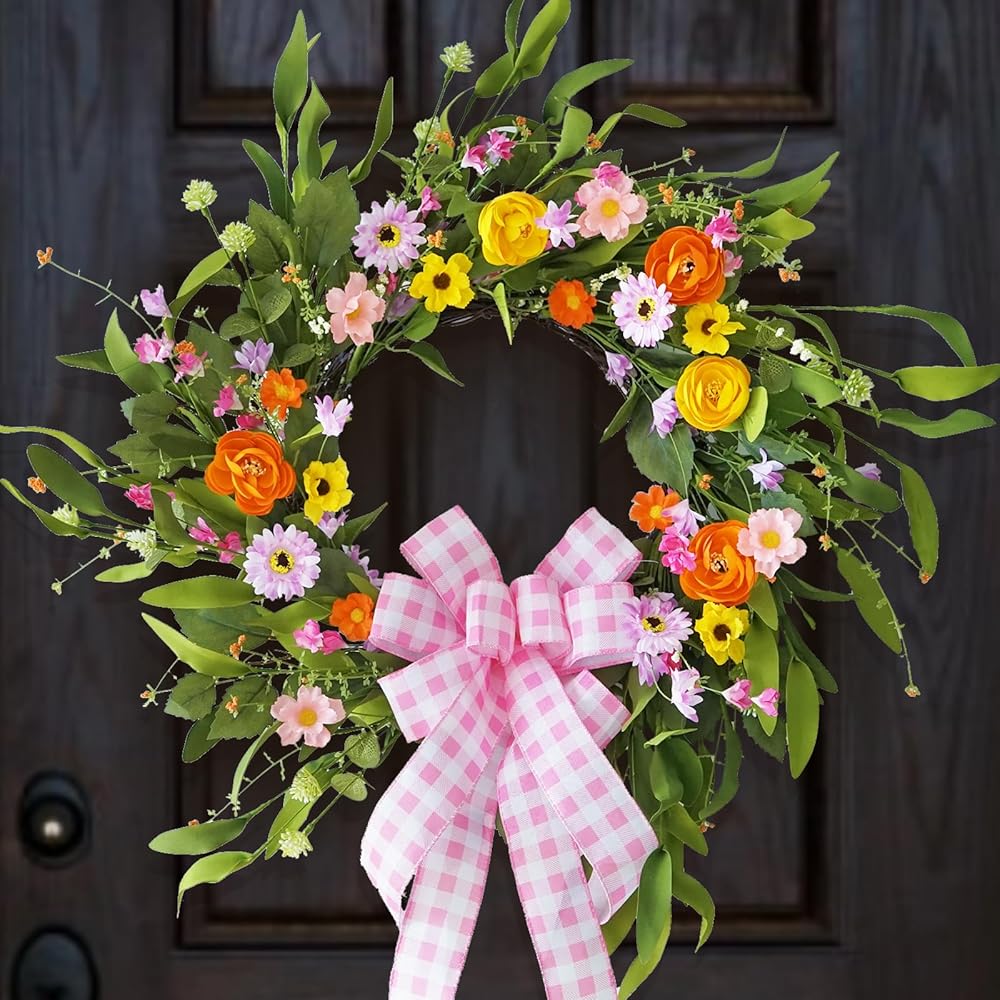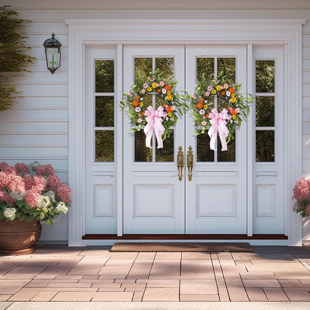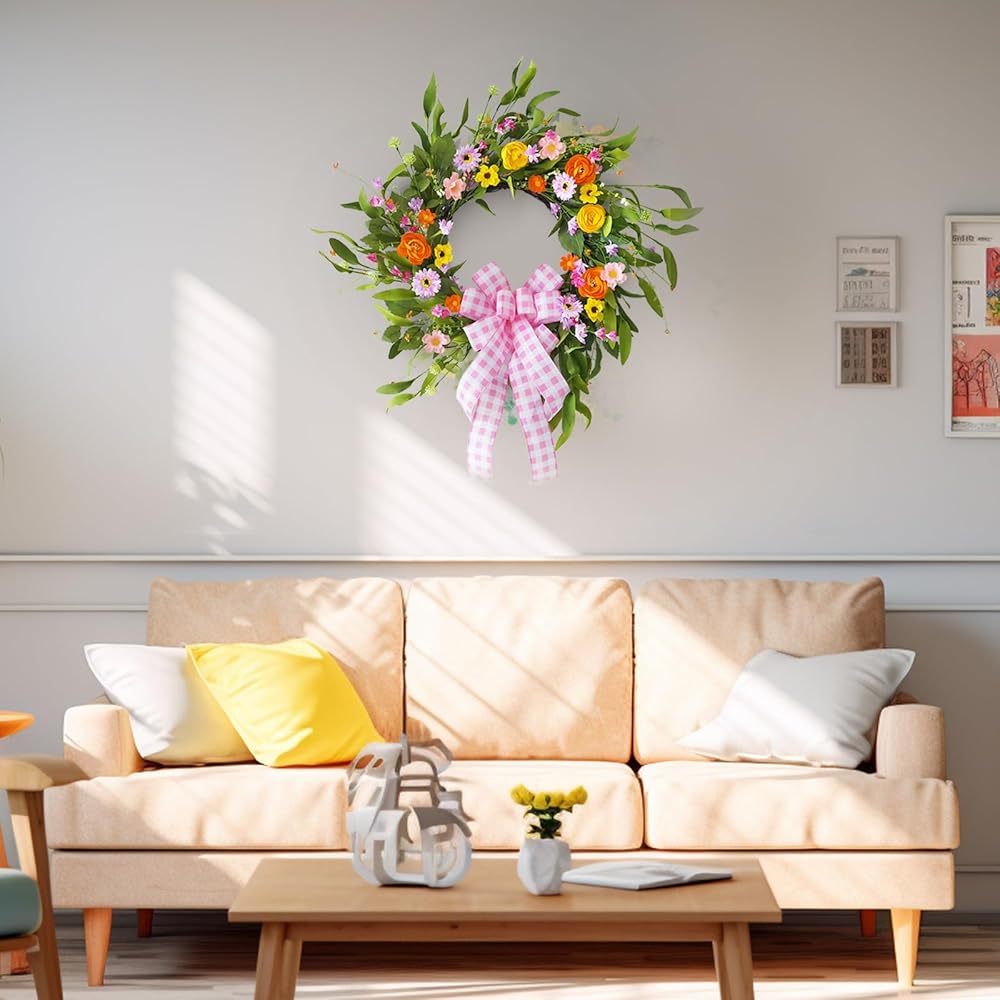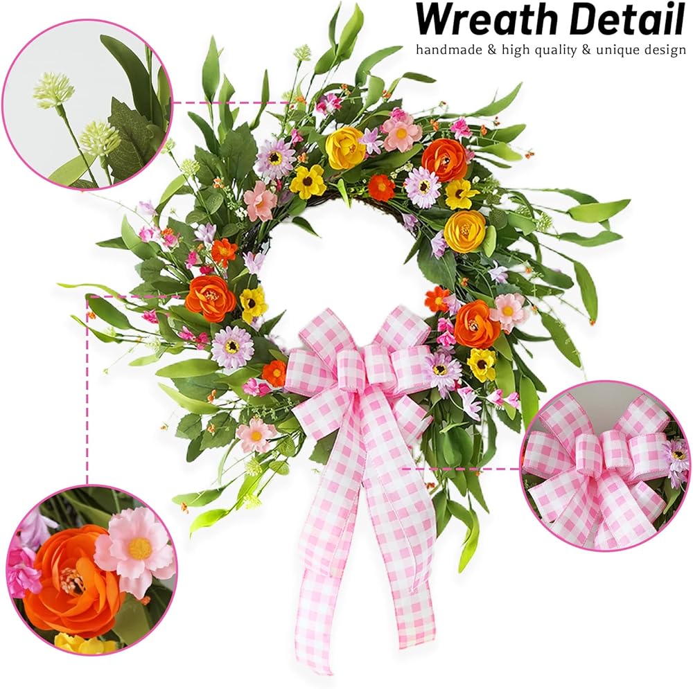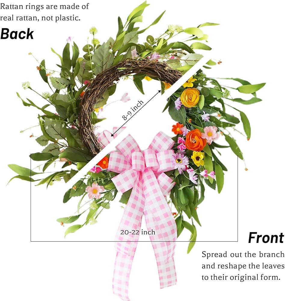 اكاليل الربيع والصيف للباب الأمامي خارج - 22 بوصة اليدوية زهرة الحرير الاصطناعي اكليلا من الزهور الخضراء الربيع الباب الأمامي اكليلا من الزهور في الأماكن المغلقة في الهواء الطلق باب عيد الفصح اكليلا من الزهور ديكور المنزل
