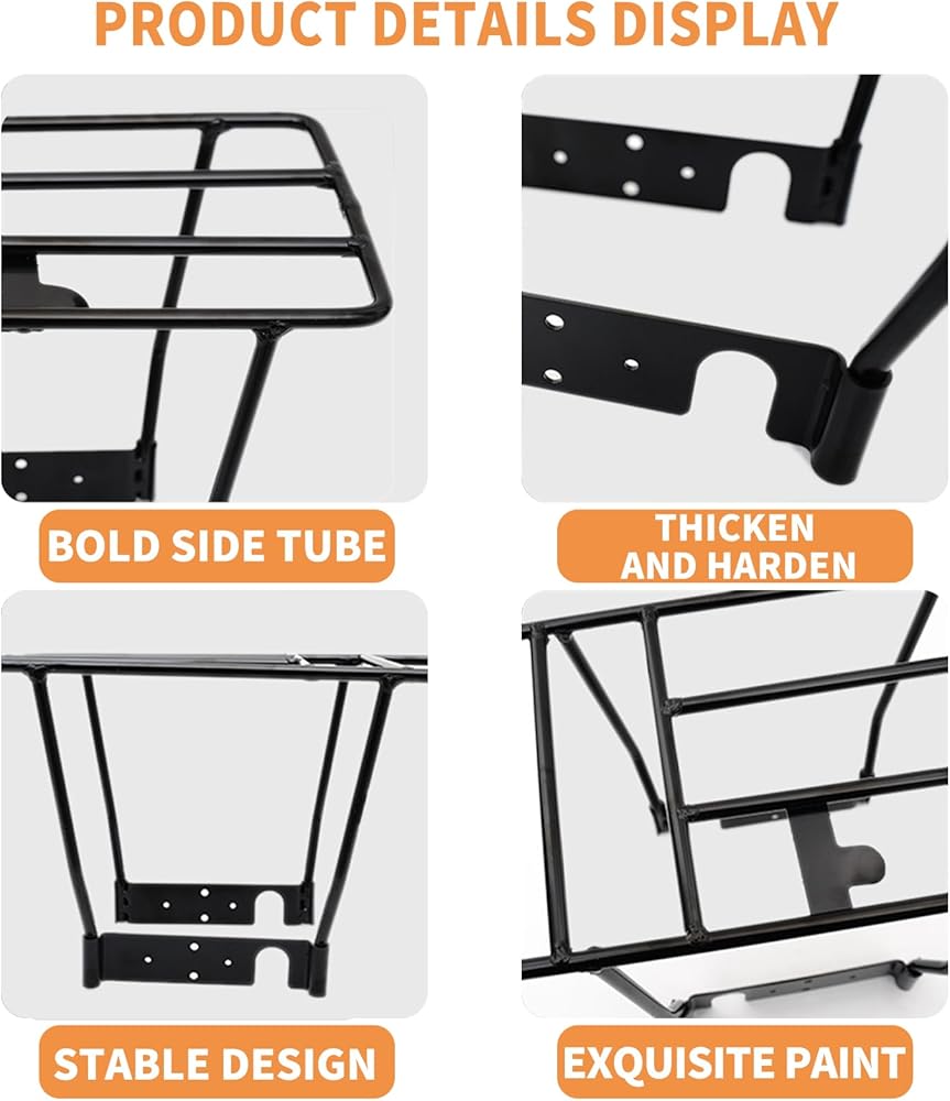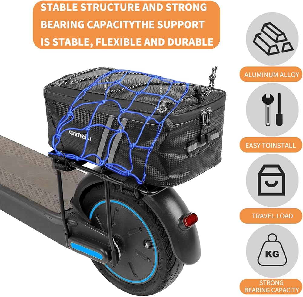 جودة عالية: الرف الخلفي لملحقات السكوتر الكهربائي مصنوع من مادة فولاذية عالية الجودة بسمك 8 مم، السطح أملس، مضاد للتآكل والصدأ، ليس من السهل سقوط الطلاء، متين وليس من السهل تلفه .