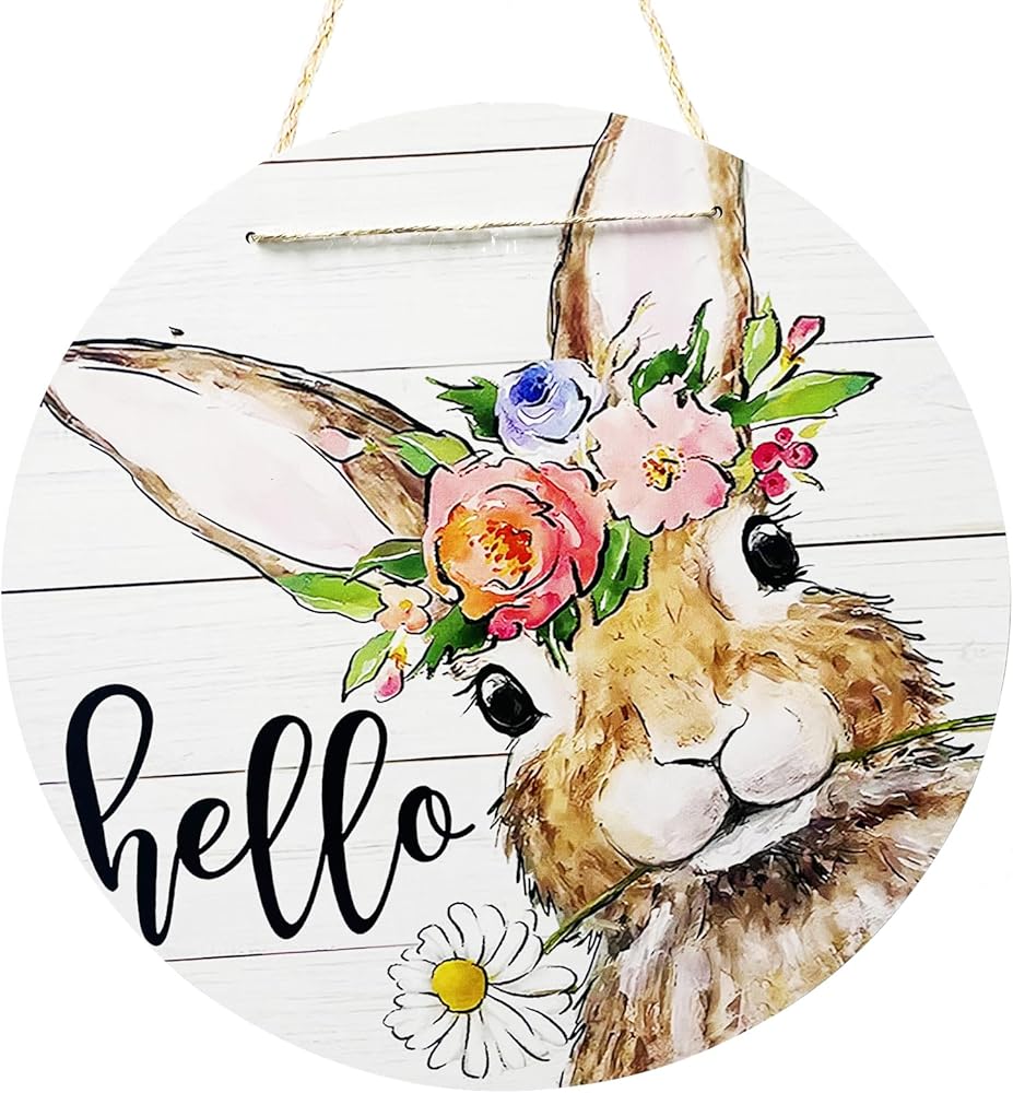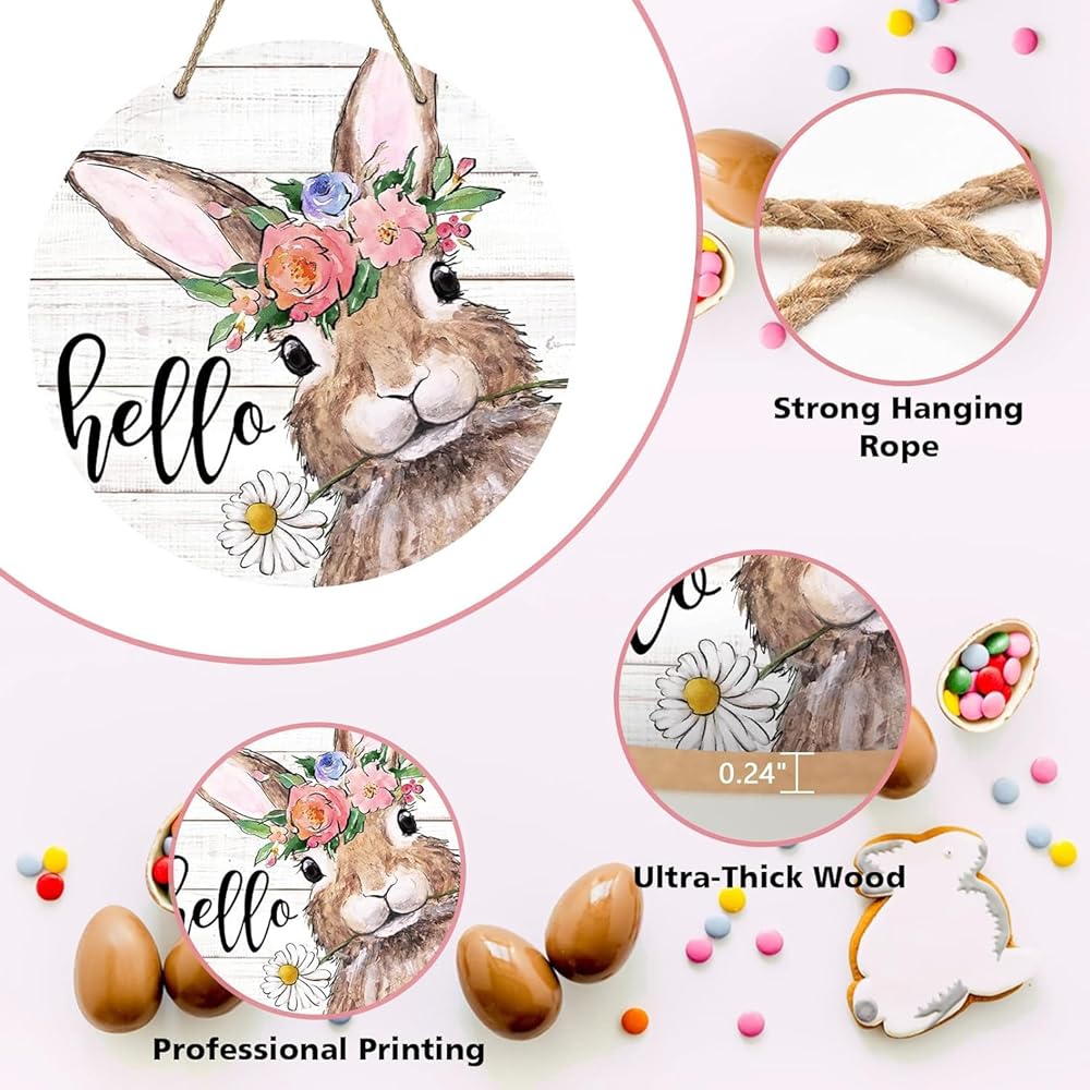 Unique Design: Our rustic door pediment design is unique and beautiful. The word "hello" and the pattern of cute rabbit wearing floral wreath are printed on the wooden board, which is funny and cute. This farmhouse decor will bring more fun to your house and show the best welcome to your friends