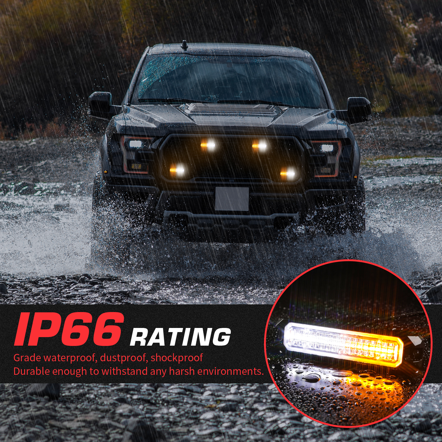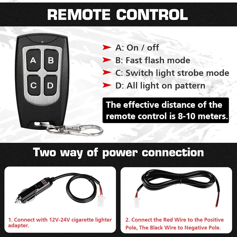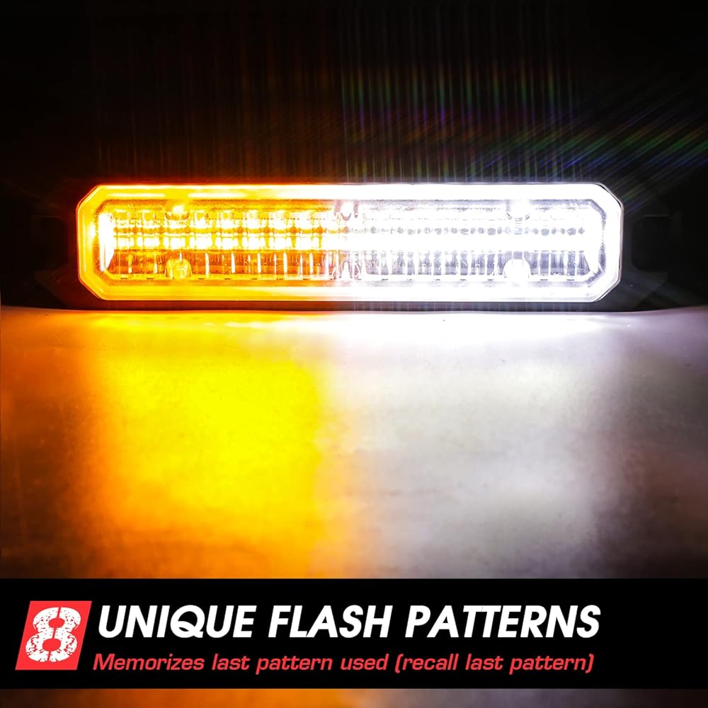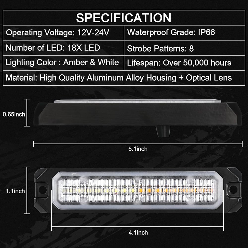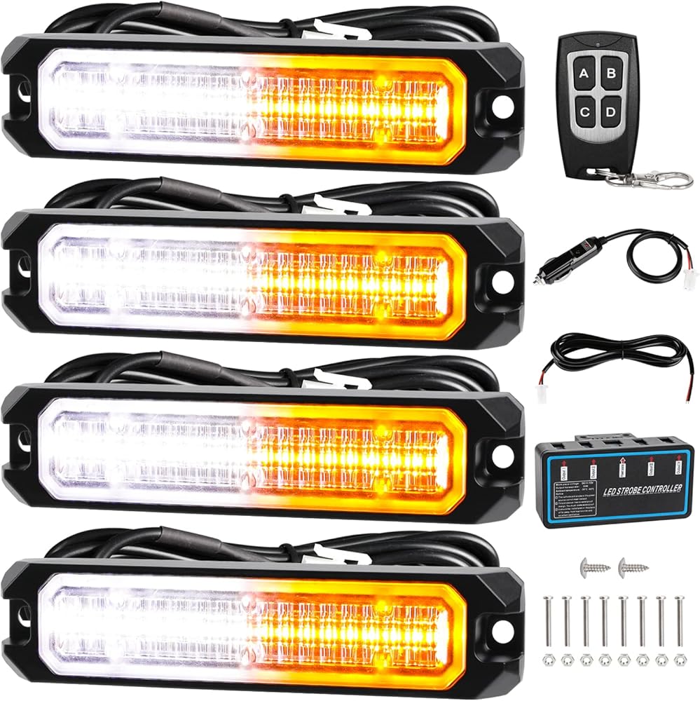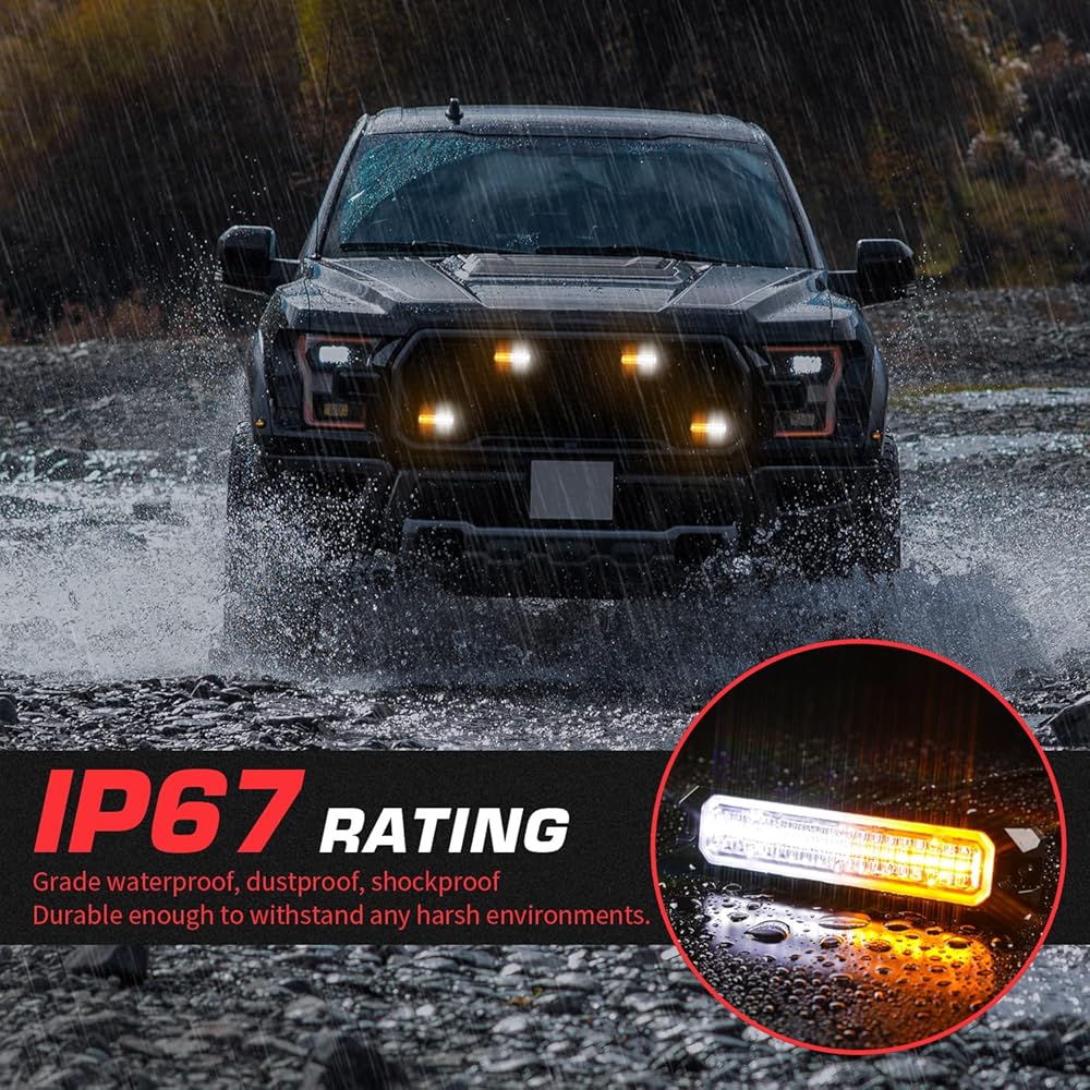 4 قطع من المصابيح القوية فائقة السطوع: تتضمن 4 مصابيح مزامنة فائقة السطوع تتميز بـ 18 مصباح LED وصندوق التحكم الرئيسي وجهاز التحكم عن بعد لتركيب الأسلاك مجانًا. يتميز كل مصباح برقائق LED عالية الكثافة مع عدسات بصرية واسعة، ويوفر إخراج ضوء ساطع للغاية يمكن رؤيته من مسافة بعيدة، حتى في وضح النهار. تحسين أمن محرك الأقراص وتجنب الحوادث.