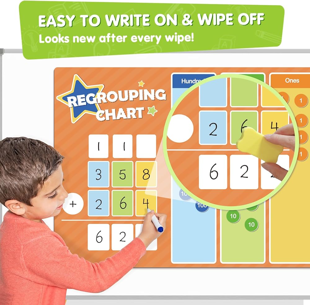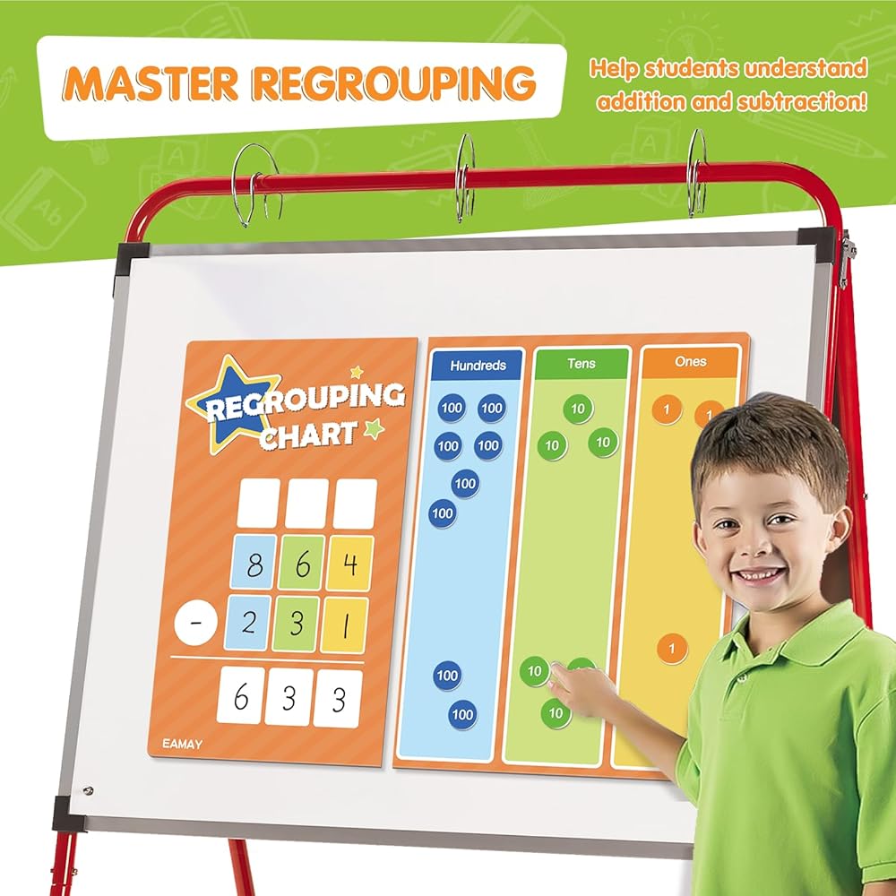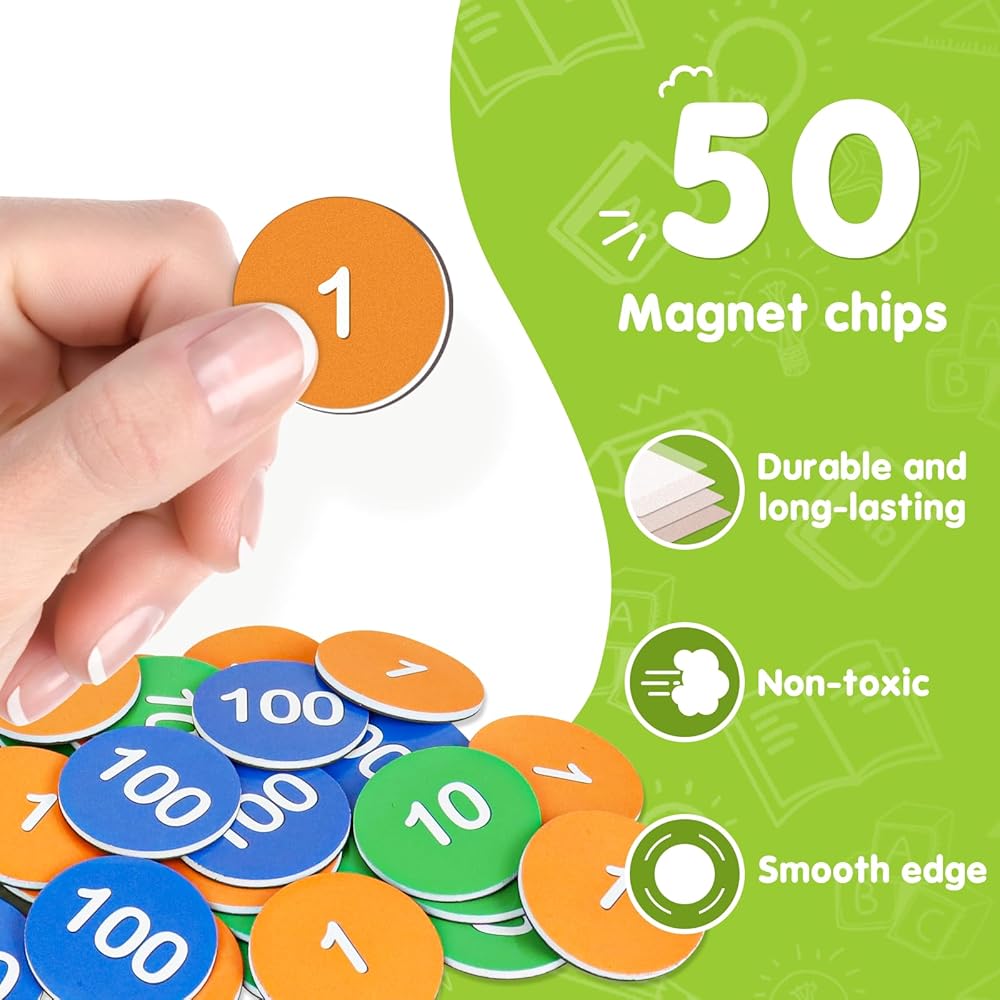EAMAY إعادة تجميع قاعدة عشرة أدوات القيمة المكانية، الجمع والطرح، أدوات الرياضيات للصف الأول والثاني والثالث يجب أن يكون لديهم! طقم مع لوح مسح جاف مغناطيسي ورقائق مغناطيسية.
