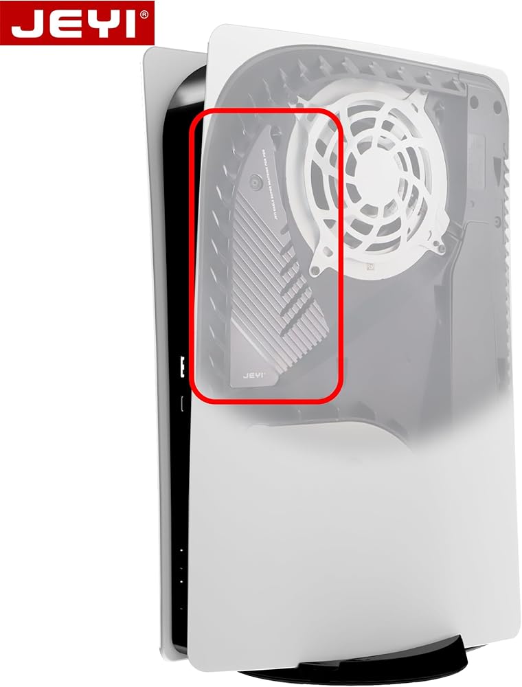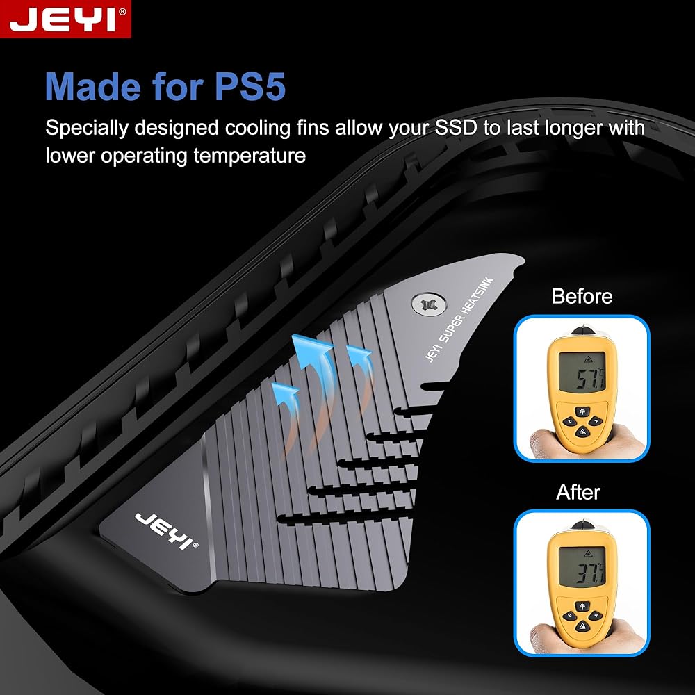 JEYI Design PS5 NVMe SSD Heatsink، مبرد ألومنيوم فضائي لجهاز Playstation 5 داخلي PCIe M.2 NVMe 4.0 Gen4، وسادات حرارية ودبوس قفل خلفي سهل التركيب