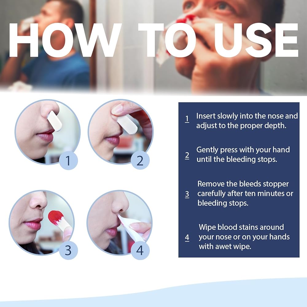- 【مبتكرة ومفيدة】أكثر فعالية وأقل فوضى من سدادة نزيف الأنف التقليدية. خفيف وعديم الرائحة ولا يسبب الحساسية.