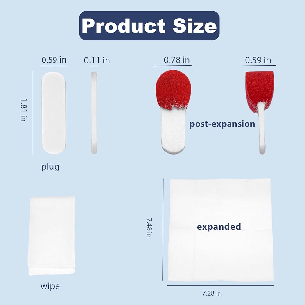 - 【صغيرة ومريحة】سدادات نزيف الأنف للبالغين بتصميم رقيق ومنفصل. يبلغ مقاس سدادة الأنف 1.81 بوصة × 0.59 بوصة × 0.11 بوصة، وهي سهلة الحمل.
