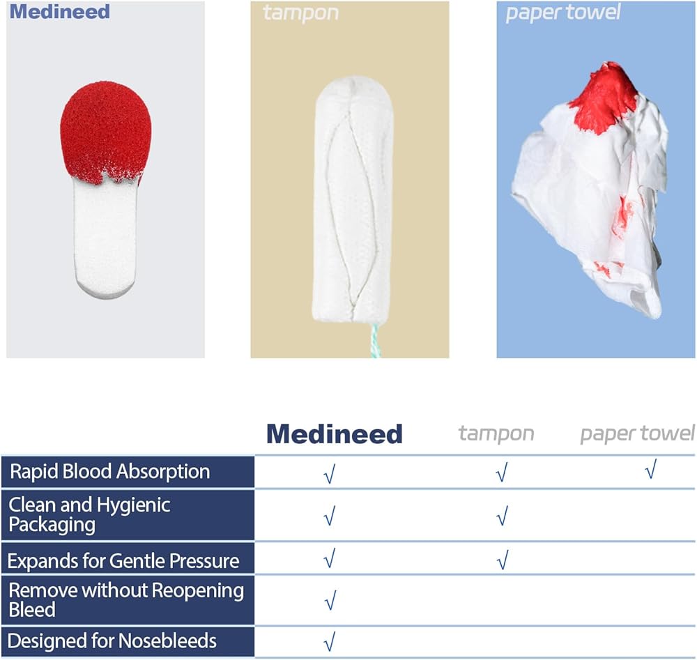 - 【إيقاف نزيف الأنف بسرعة】يمكن للسدادات القطنية المخصصة لنزيف الأنف أن توقف النزيف في ثوانٍ.