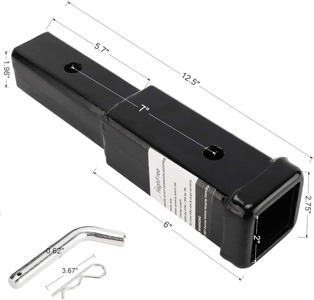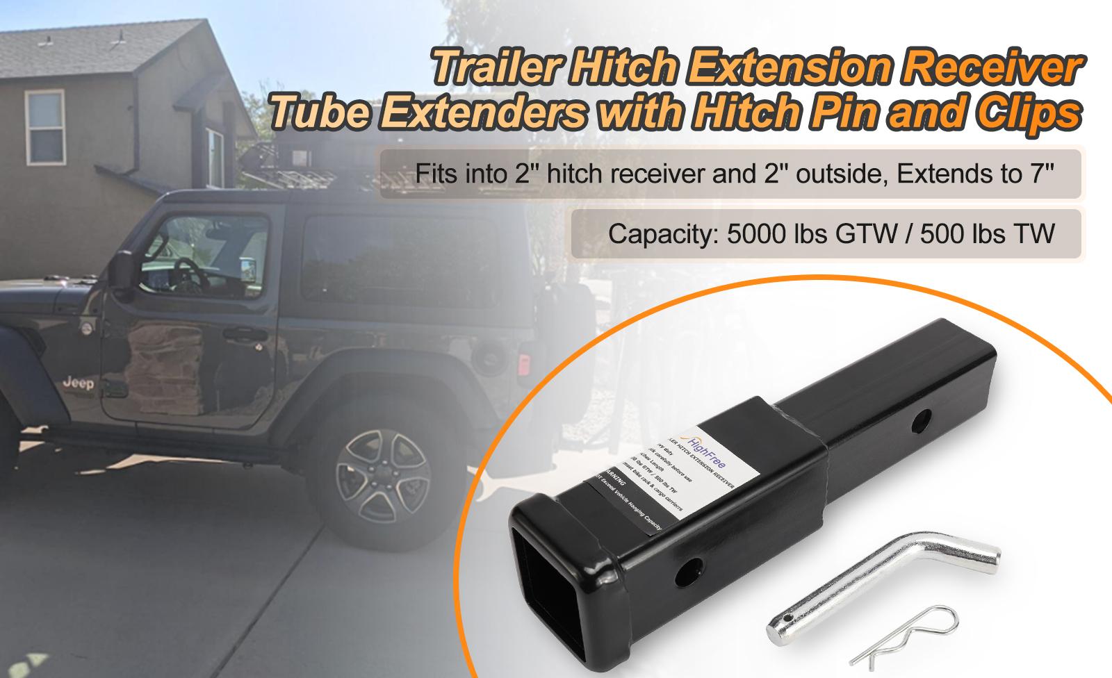 يناسب جهاز استقبال وصلة ربط مقاس 2 بوصة و2 بوصة في الخارج، ويمتد إلى 7 بوصة، ويوفر مساحة إضافية للمقطورة أو الإكسسوارات المثبتة على وصلة الجر.