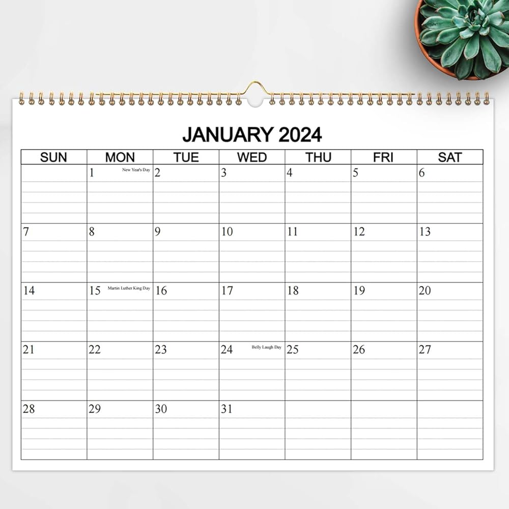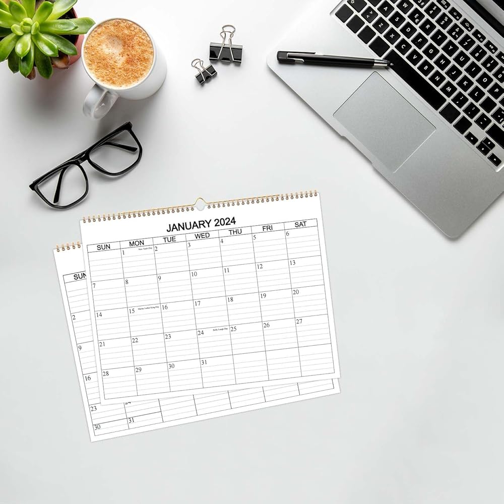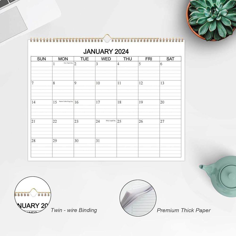 This simplified and clean design wall calendar 2024 monthly suitable for any office, school, family and home with any decoration style, it is not only a reference calendar with Holidays marked, but also a prompter to prevent you from forgetting any appointments, deadlines, birthdays and other important occasions. This calendar 2024 wall is 8.5"(H) x 11.5"(W), little bigger than letter sized pages, perfect size for wall, desk. Each monthly view page has ruled daily blocks, each block is 1.49 x 1.34 inch with plenty of writing space for planning your daily scheduling. These calendars 2024 wall are printed on 140gsm premium white papers for smooth writing, heavy-weight, acid-free papers to avoid ink bleed-through. Suitable for fountain pen, gel pen, roller pen, ballpoint pen, highlighter, pencil and etc. This 2024 calendar wall features a sturdy twin-wire binding for a smoother page-turning experience, and a metal hanging hook for hanging calendar flexibly. 18 months of monthly calendar pages are easy to read, great as office calendars or desk calendars. This small calendar is a great gift for your children, colleagues and friends.