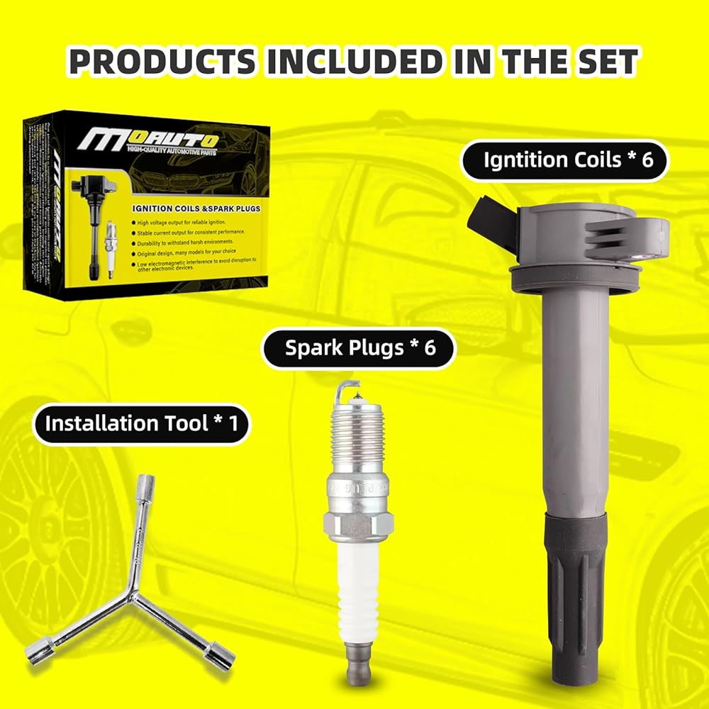 [الحزمة الكاملة] تتضمن العبوة كل ما تحتاجه لتنشيط سيارتك وتشغيلها بسلاسة: مجموعة من 6 ملفات إشعال، و6 شمعات إشعال إيريديوم عالية الجودة، وأداة إزالة ملف الإشعال. مع هذه المجموعة الشاملة، يمكنك أن تثق في أن سيارتك ستؤدي بأفضل حالاتها.
