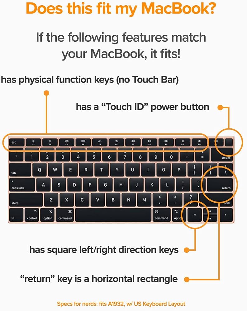 • تم تصميمه ليتناسب بدقة مع لوحة المفاتيح الخاصة بجهاز MacBook Air 13 2018-2019 مع لوحة مفاتيح الفراشة (رقم موديل Apple A1932)، تخطيط لوحة المفاتيح الأمريكية فقط