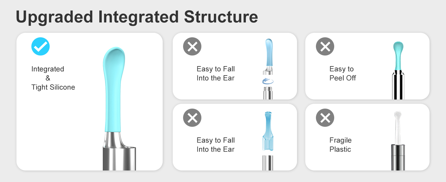 • هيكل متكامل مطور: تم دمج طرف وجسم مجموعة إزالة شمع الأذن المطورة. يمكن أن يمنع الطرف من السقوط تمامًا. يحسن بشكل كبير سلامة الاستخدام.